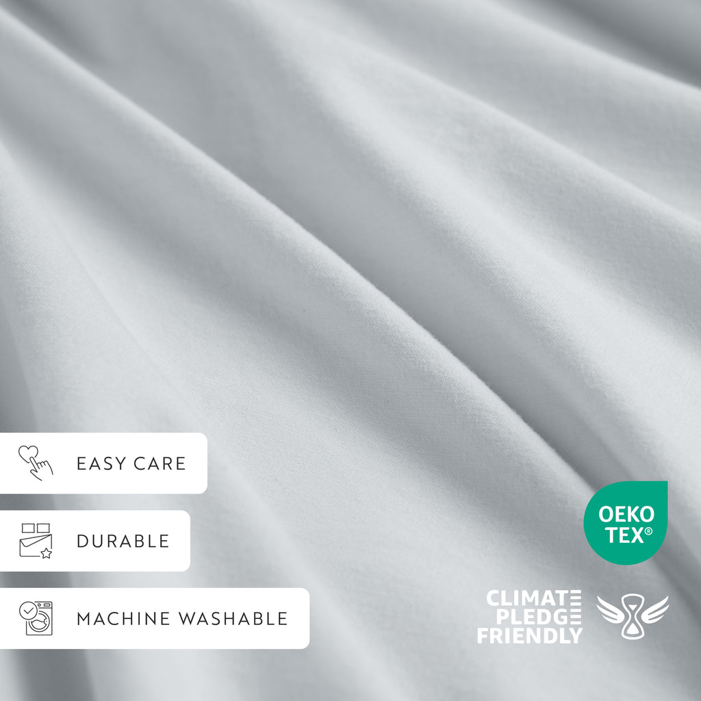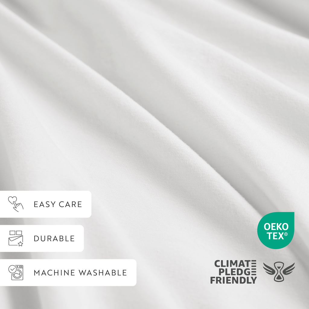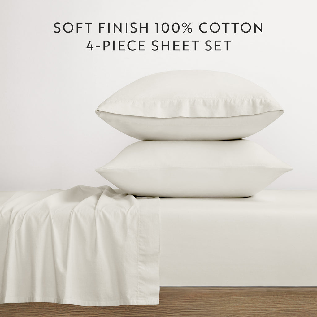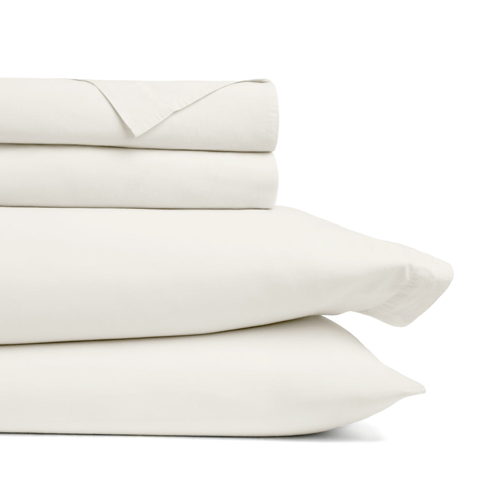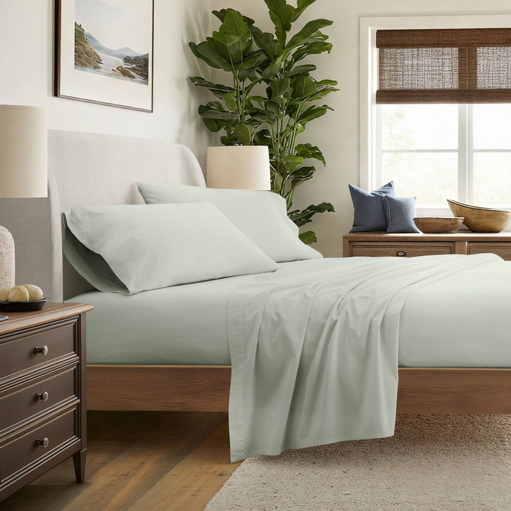 Discover unparalleled softness with our 100% cotton sheet set, expertly crafted from a lightweight, breathable percale weave. Pre-washed and brushed for exceptional comfort, these OEKO-TEX certified sheets stay naturally cool and wick moisture for a restful night's sleep. Combining hotel-quality luxury with lasting durability, they elevate your bedtime ritual with effortless sophistication. Slip into cool, cozy comfort, tonight!