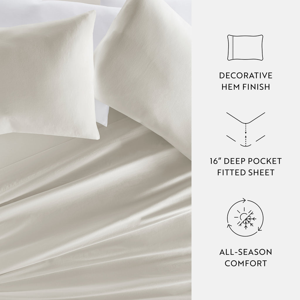 - Fabric Contents: TC 300 100% Cotton Sateen, Brushed and Washed