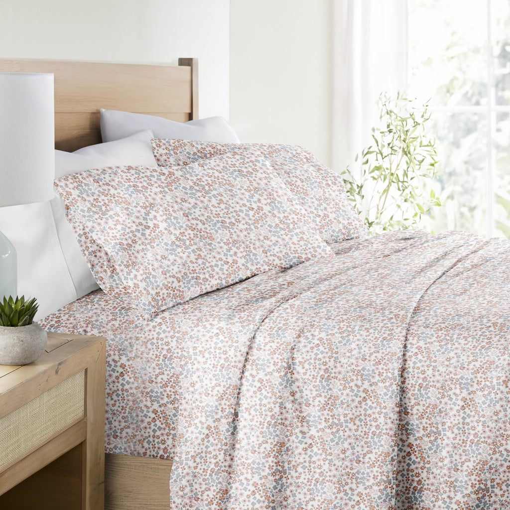 Experience the ultimate in comfort with our 4-Piece Long Staple 100% Cotton Sheet Set in beautiful patterns and colors. Crafted from the finest long-staple cotton, these sheets offer a luxurious touch that will transform your sleep experience. Washed and brushed for superior softness, they envelop you in a gentle embrace, ensuring a restful night's sleep. Indulge in the plushness and durability of long staple cotton, creating a haven of comfort in your bedroom. Upgrade to the epitome of luxury and elevate your sleep to new heights.