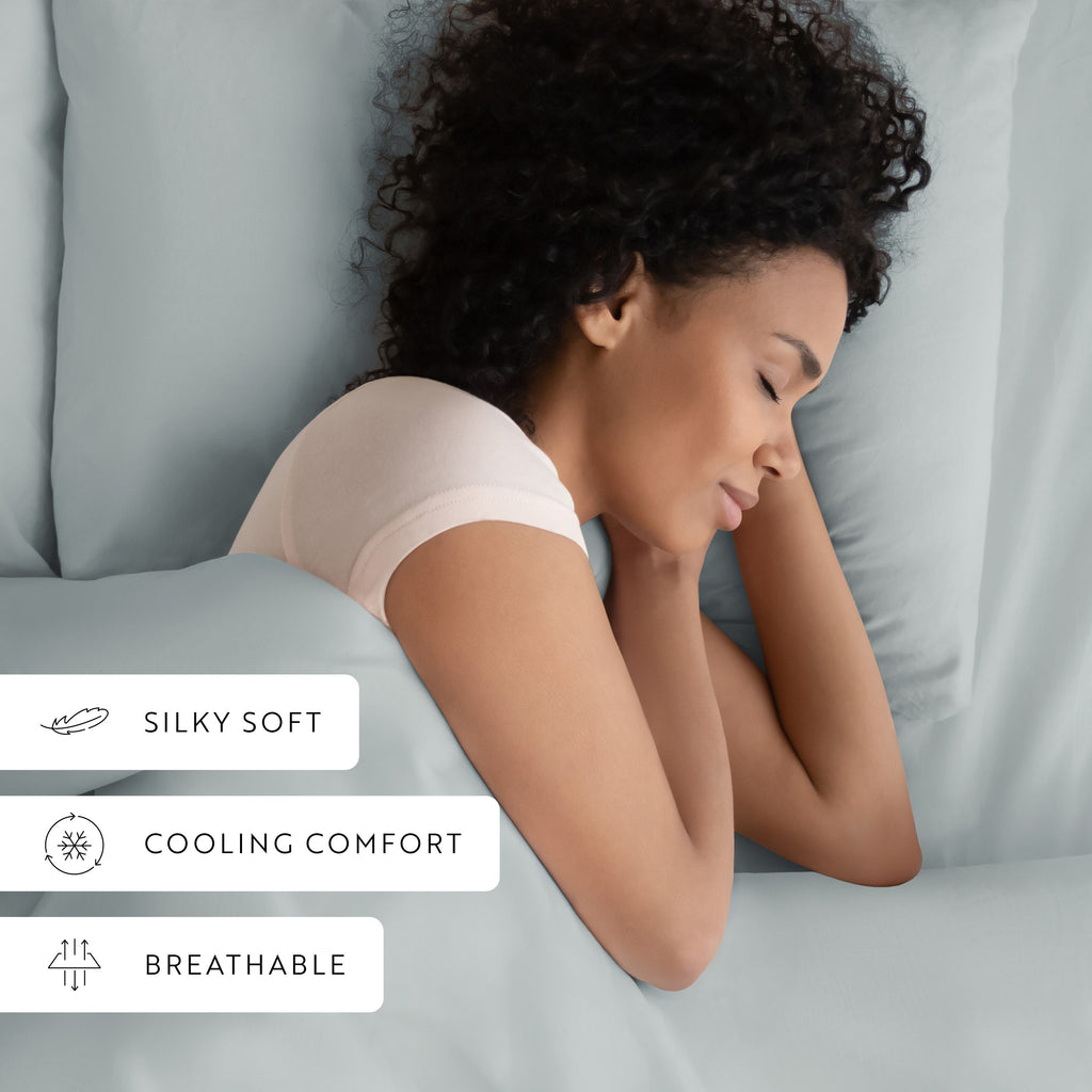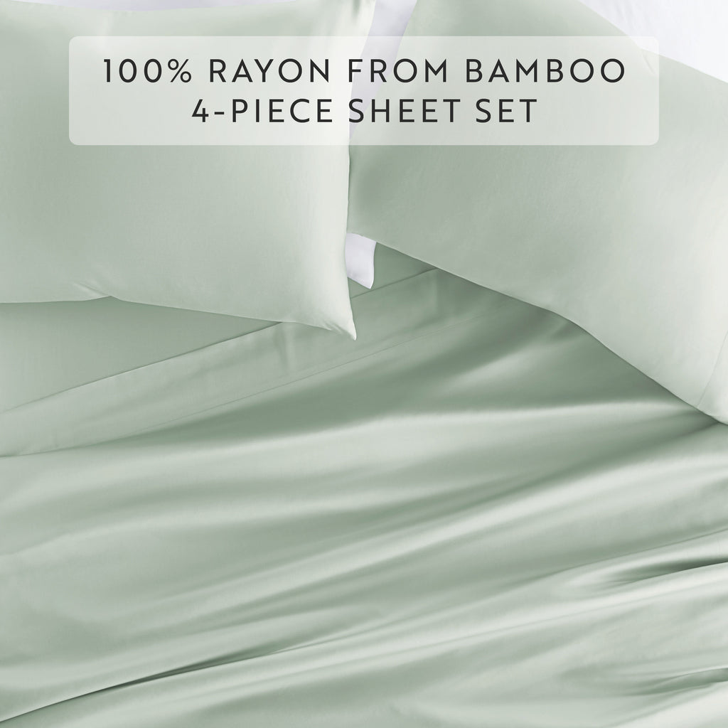 Drift off to sleep with this silky smooth bamboo sheet set. Made from 100 percent rayon from sustainably sourced bamboo, this set is amazingly soft, naturally breathable and twice as strong as cotton. Available in a variety of colors you're sure to find the perfect set to give your bedding some added comfort and style.
