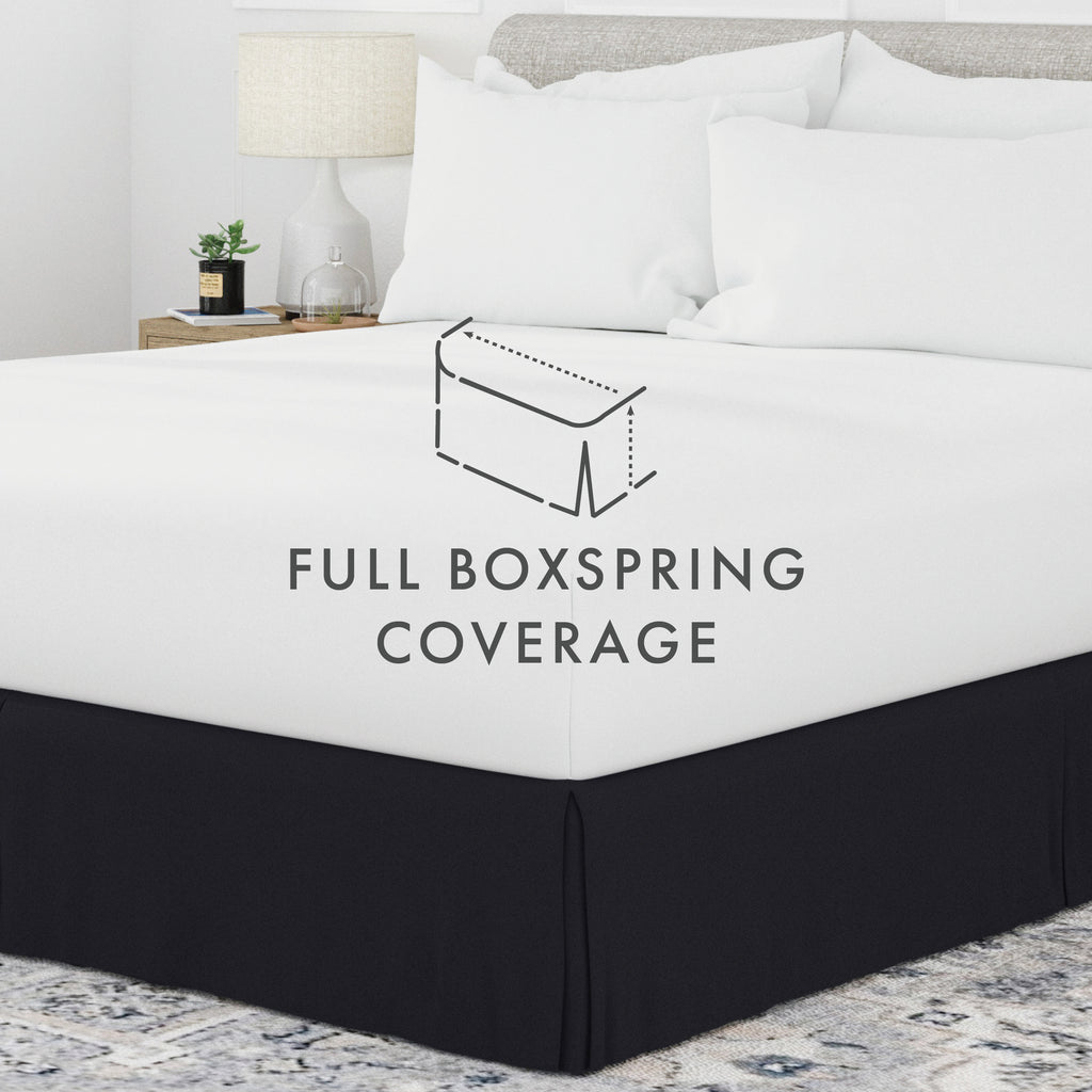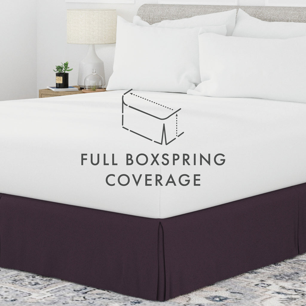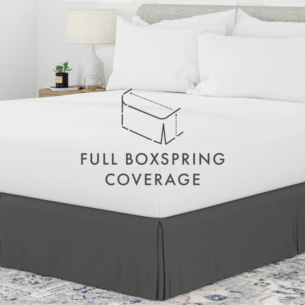 Perfectly conceal bedposts, stored items and protect against the accumulation of dust with this premium pleated dust ruffle bed skirt. Made from high quality yarns, this bed skirt is wrinkle resistant and features a gorgeous pleated design on the corners and center of the skirt. Available in 6 sizes and a variety of 12 beautiful colors, you're sure to find the perfect match for your comforter or sheet set.