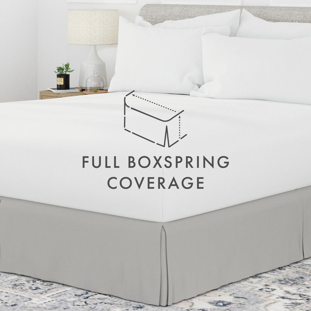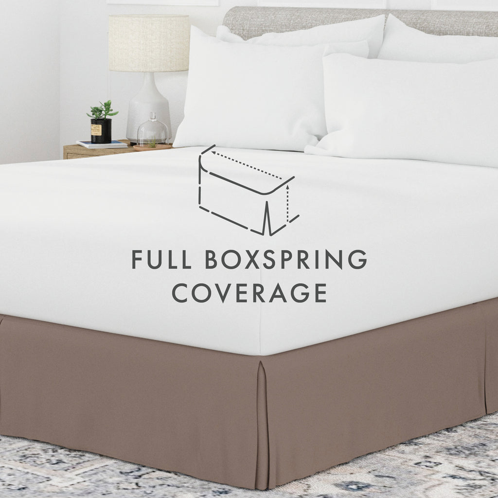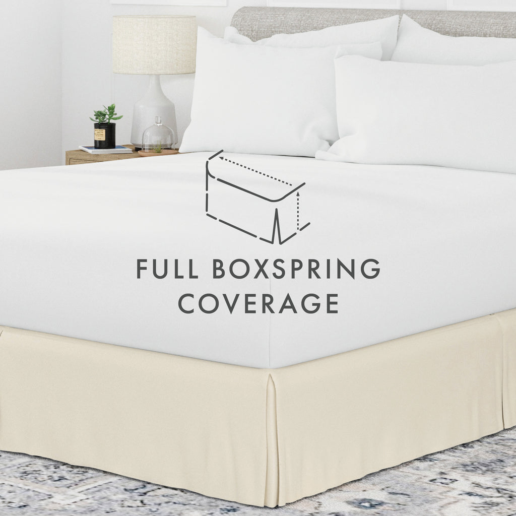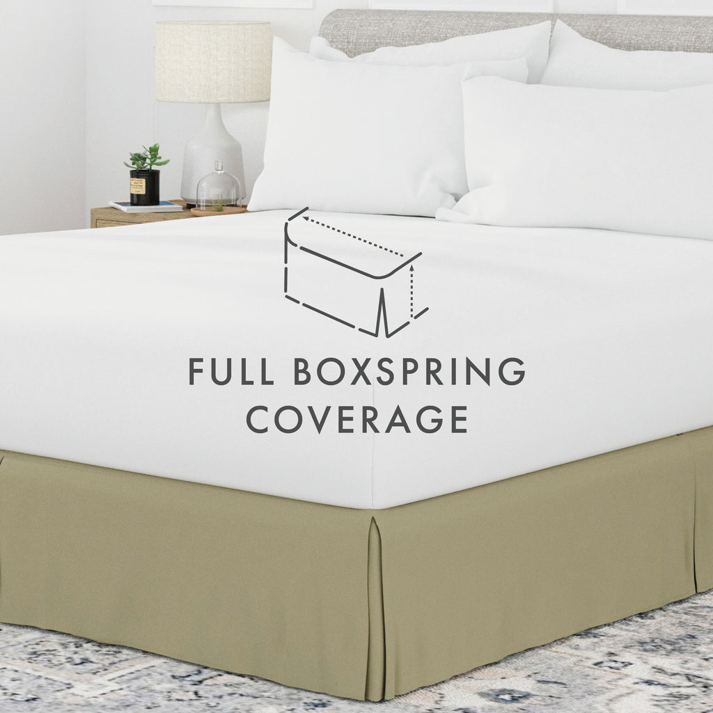 Perfectly conceal bedposts, stored items and protect against the accumulation of dust with this premium pleated dust ruffle bed skirt. Made from high quality yarns, this bed skirt is wrinkle resistant and features a gorgeous pleated design on the corners and center of the skirt. Available in 6 sizes and a variety of 12 beautiful colors, you're sure to find the perfect match for your comforter or sheet set.