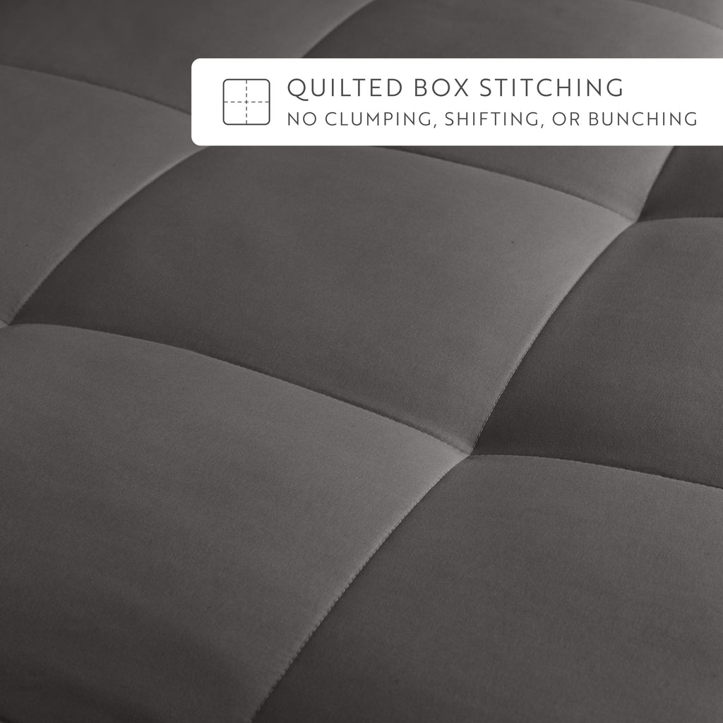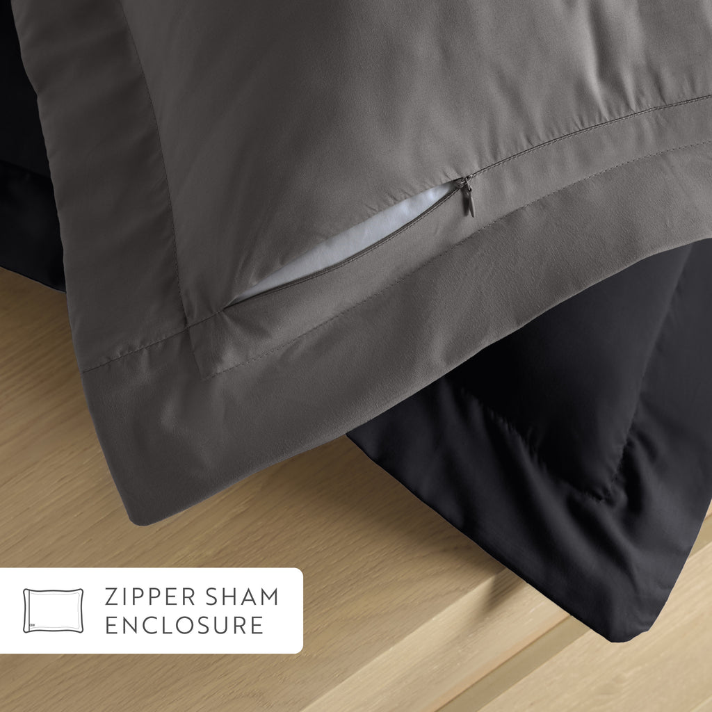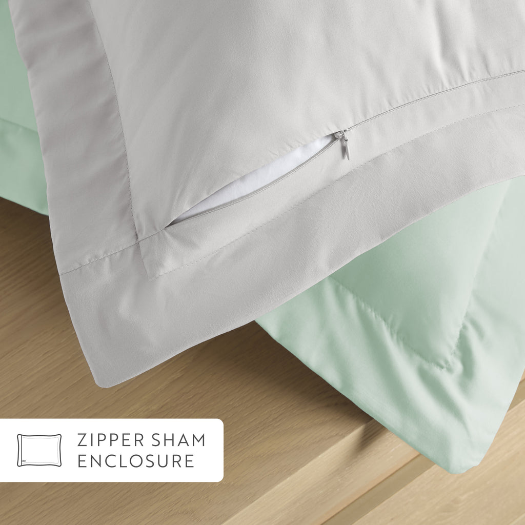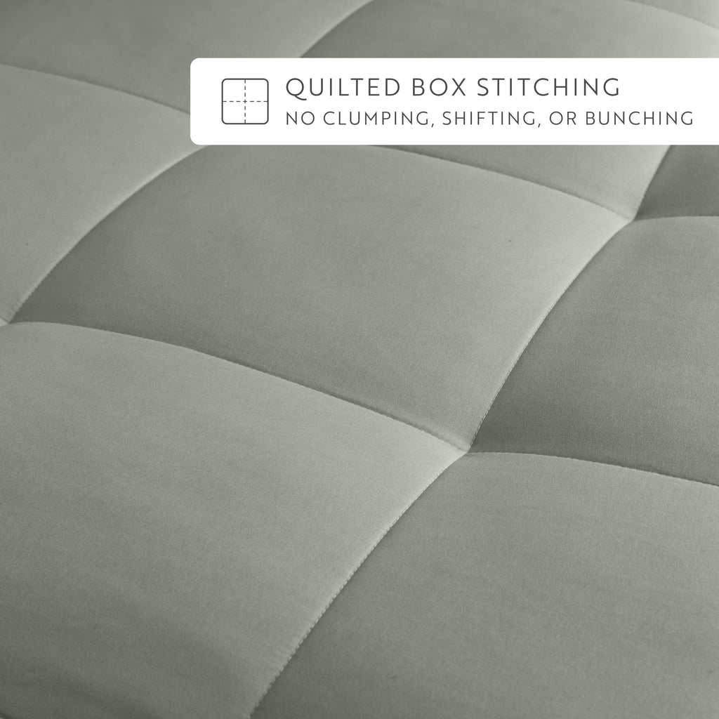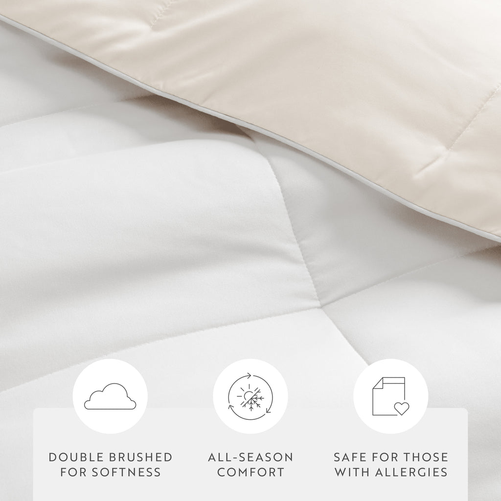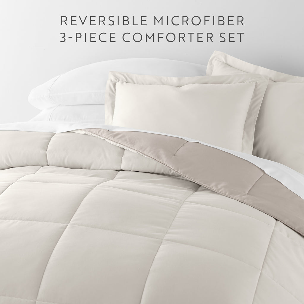 Give your bedding a brand new look and feel with this lightweight, all season reversible comforter set. Presenting a down alternative quality, it's incredible softness makes it the perfect comforter to keep you cozy all year round. The sewn through box stitching prevents the fibers from shifting. Featuring a reversible design of aesthetically matched colors, this set is ideal for making quick style changes to your sleep space!