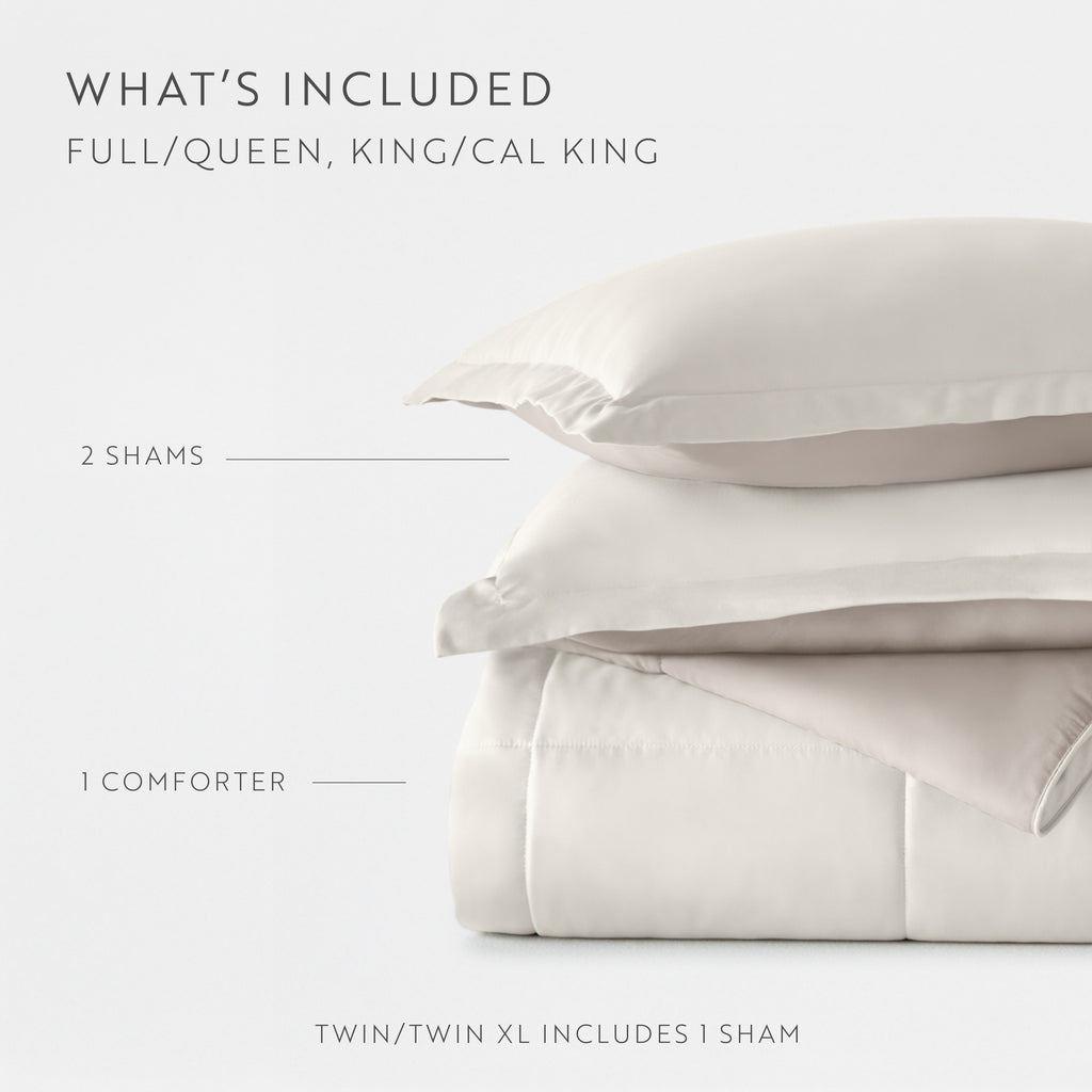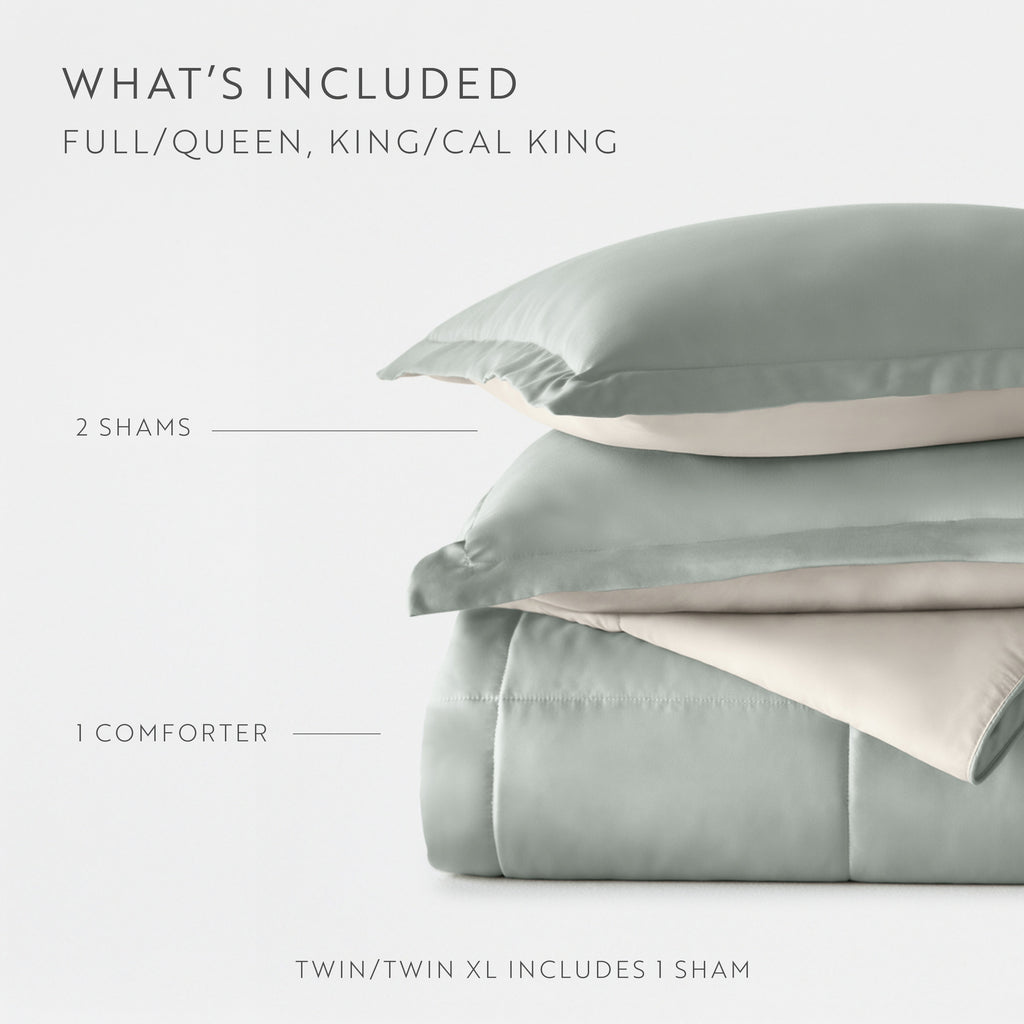 - KING/CAL-KING: 108" x 96" Comforter, 20" x 36" King Pillow Shams with 2" flange