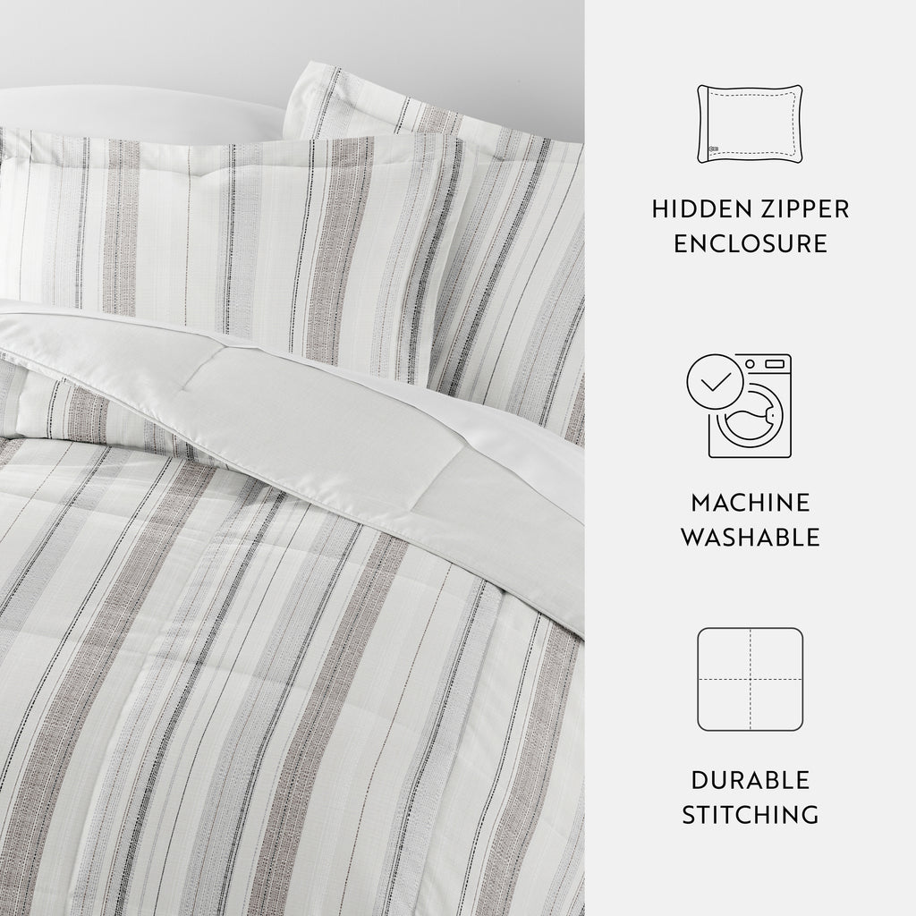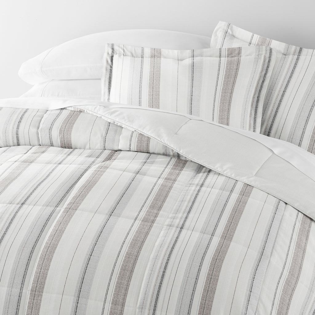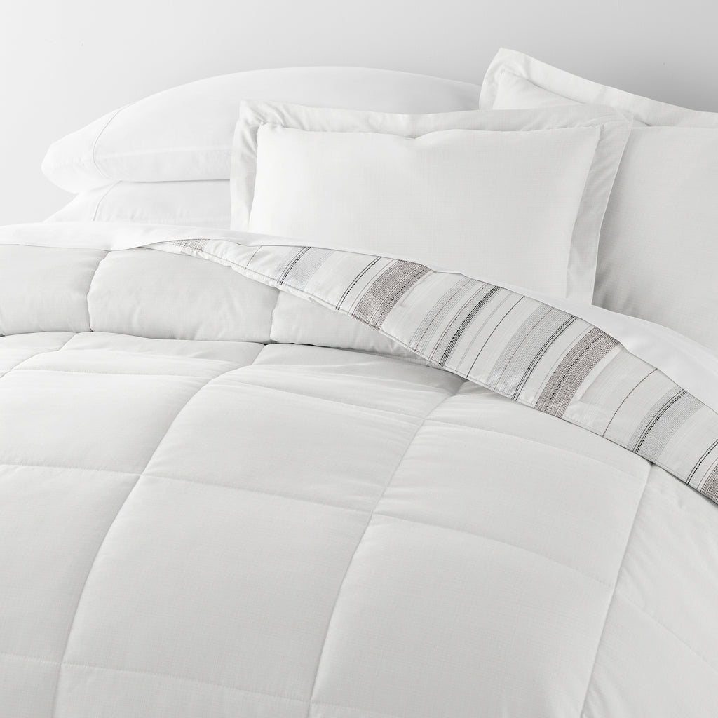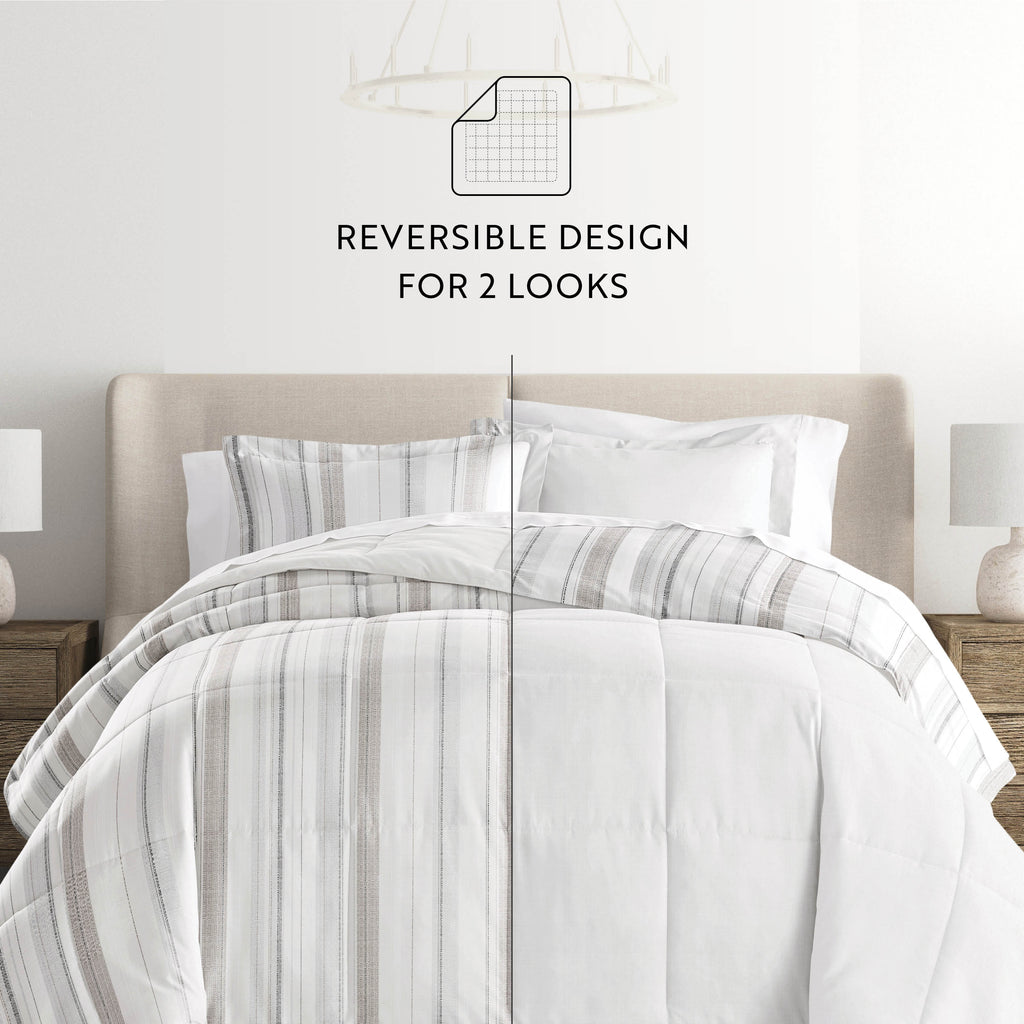 Vertical Stripe Reversible Patterned Down-Alternative Comforter Set