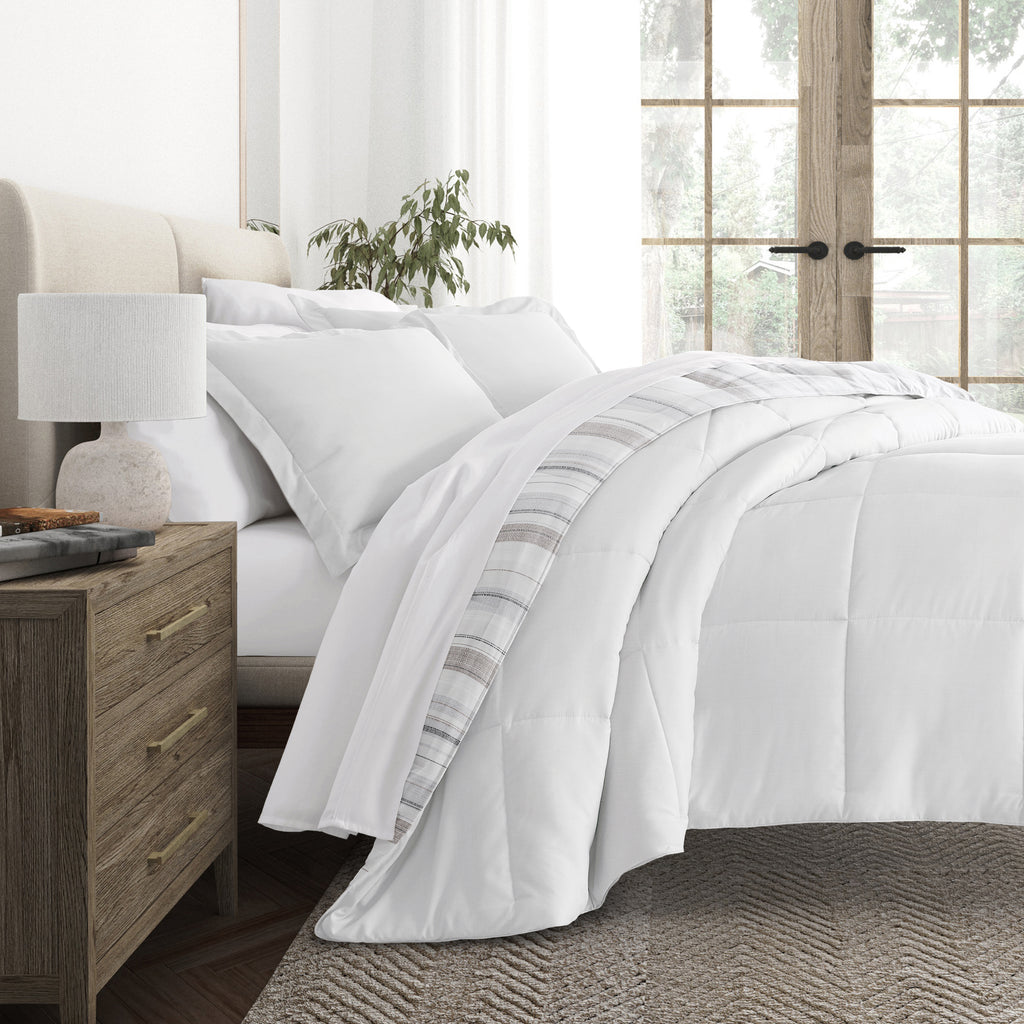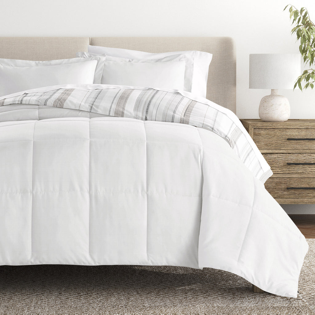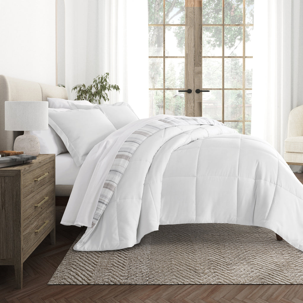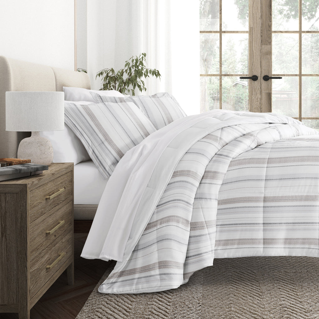 Vertical Stripe Reversible Patterned Down-Alternative Comforter Set