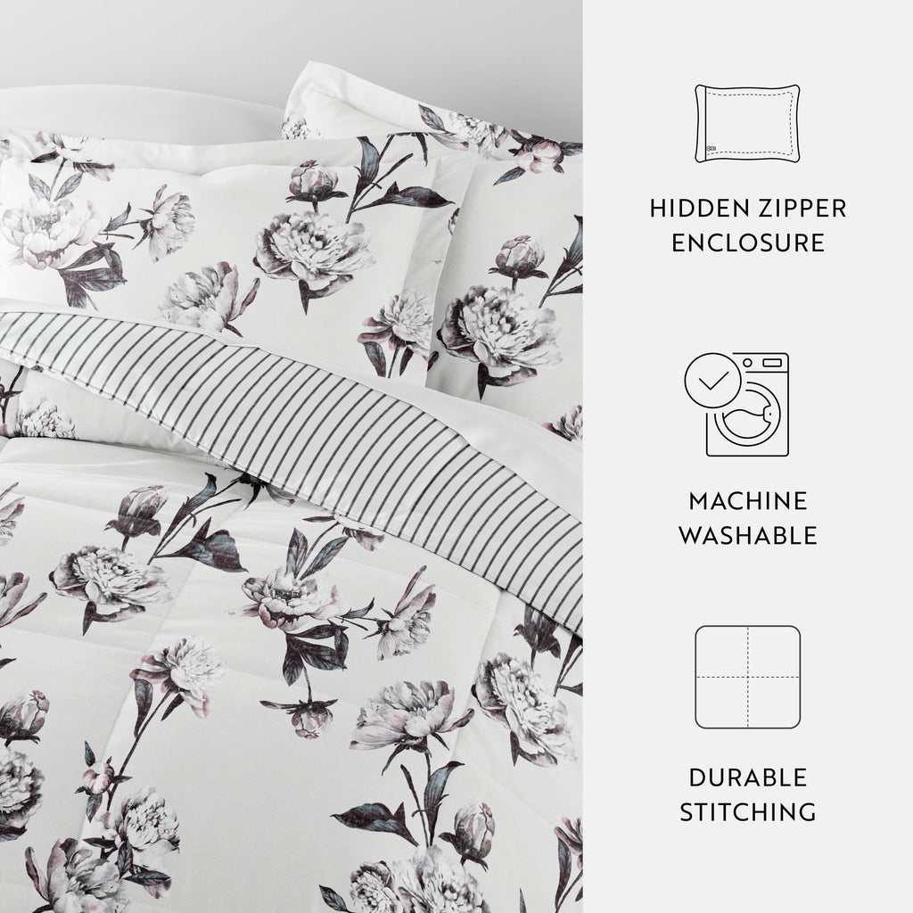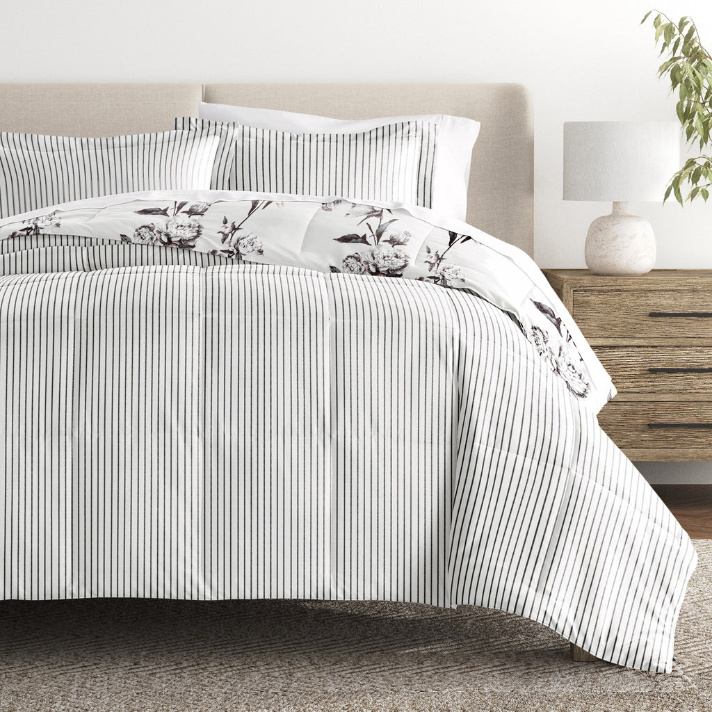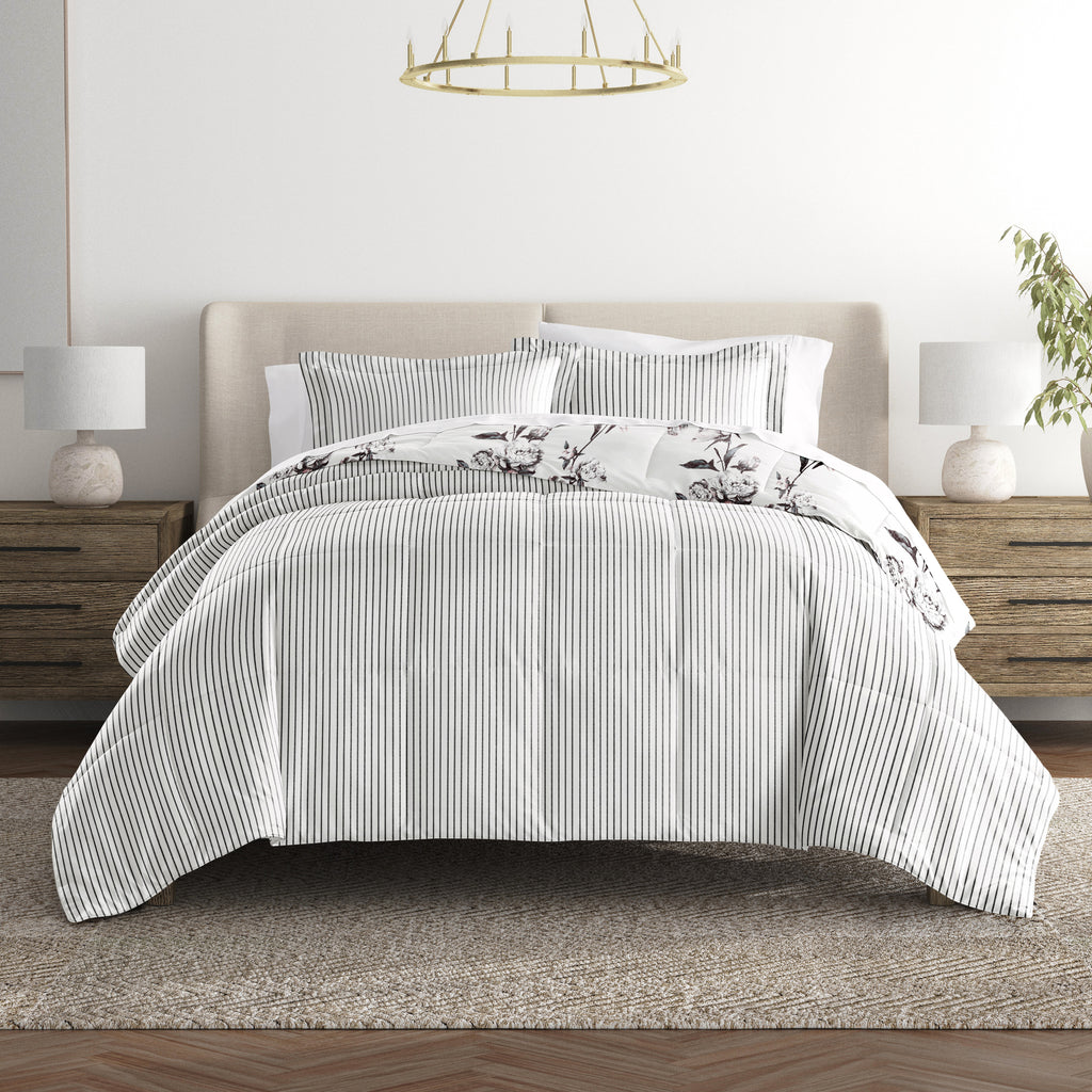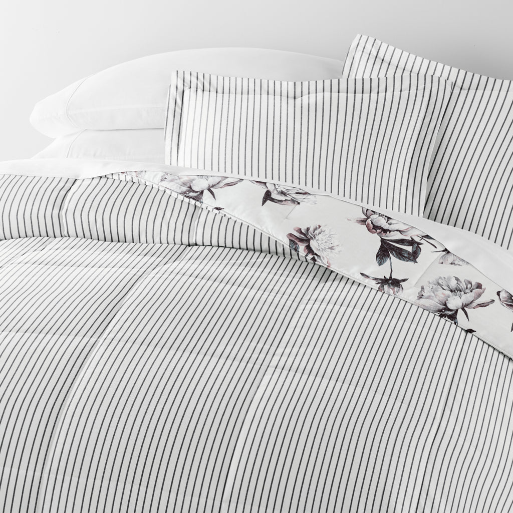 Vintage Magnolia Stripe Reversible Patterned Down-Alternative Comforter Set