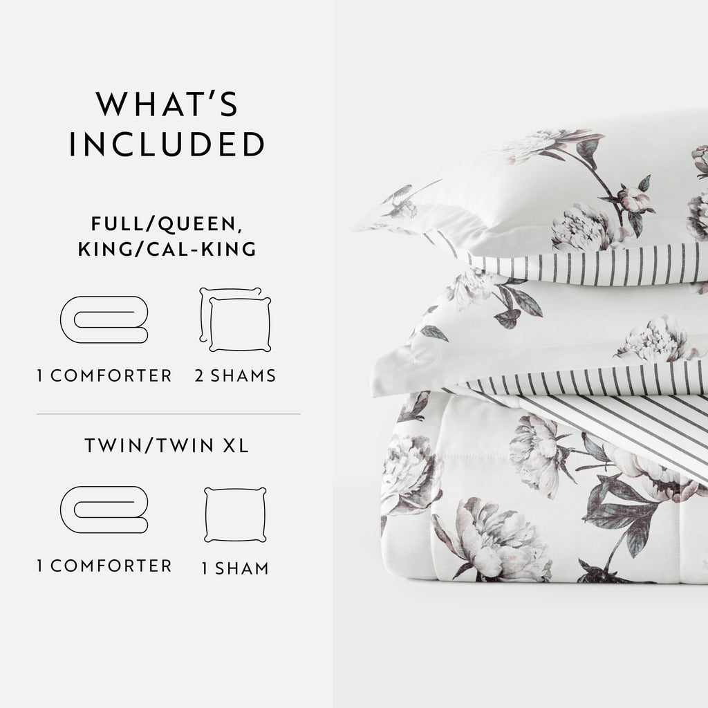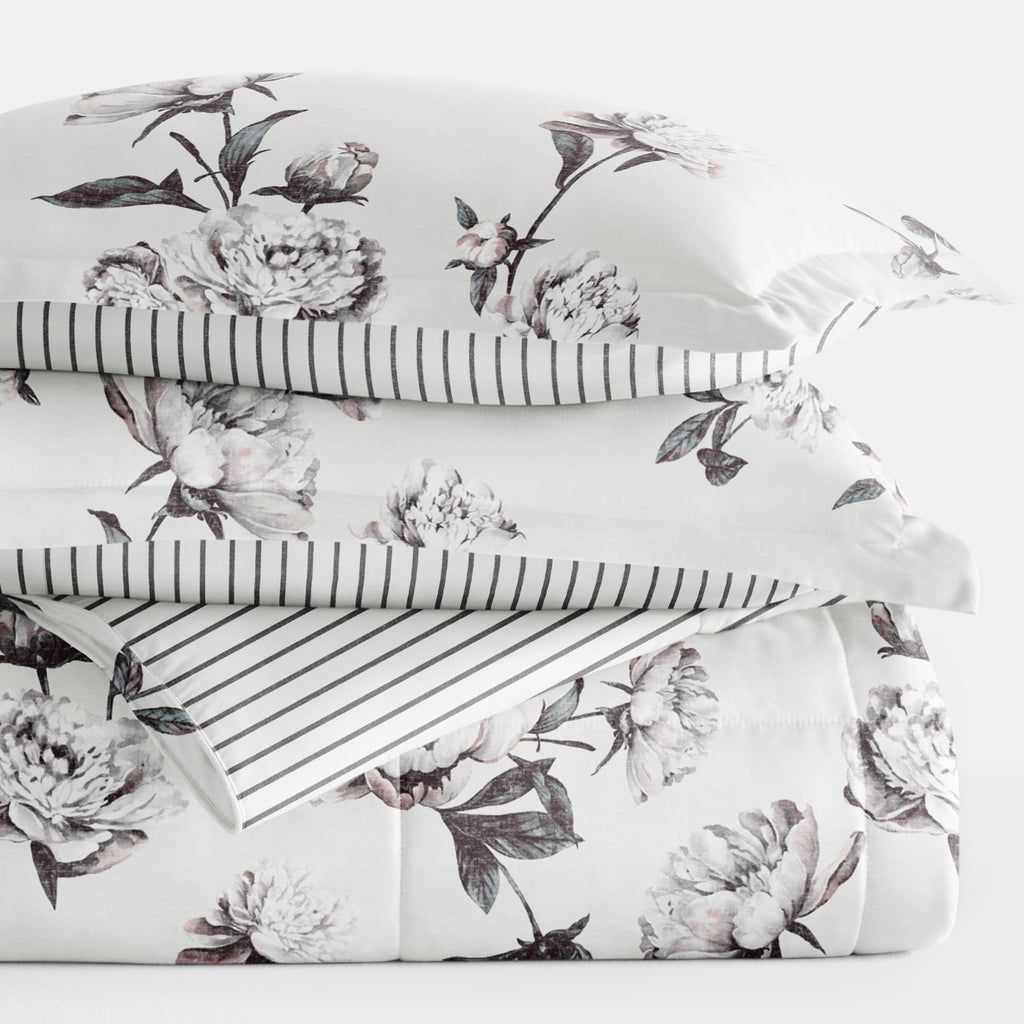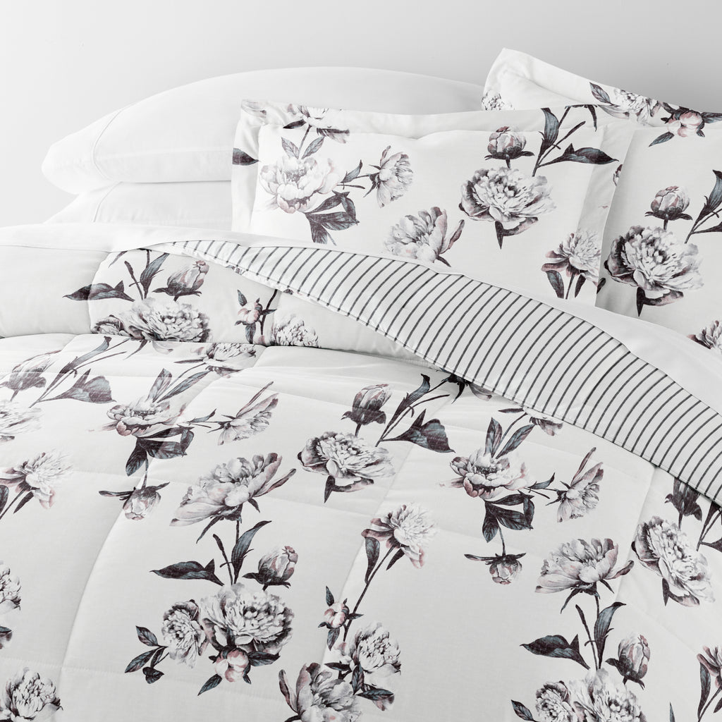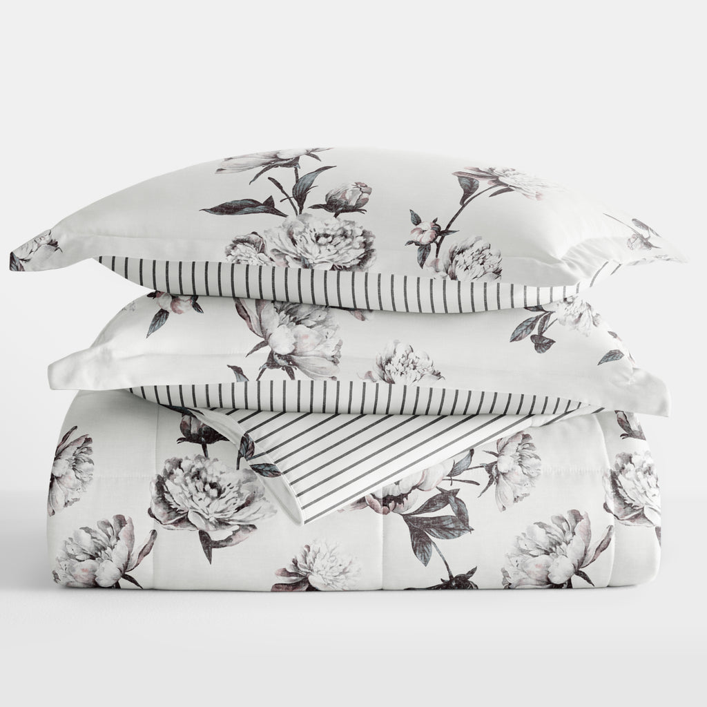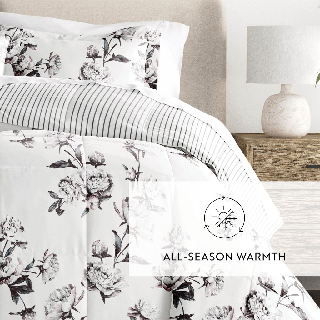 Vintage Magnolia Stripe Reversible Patterned Down-Alternative Comforter Set
