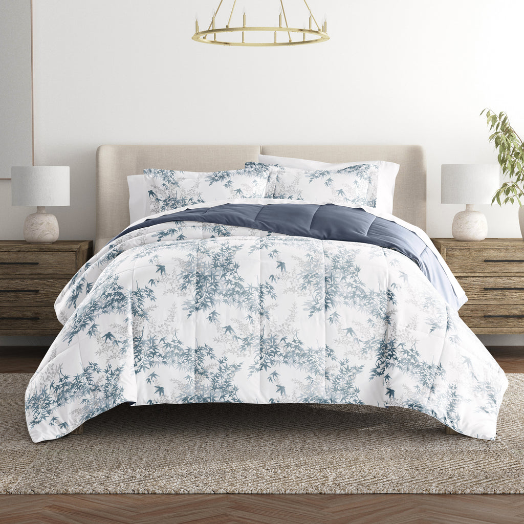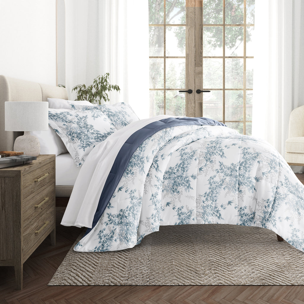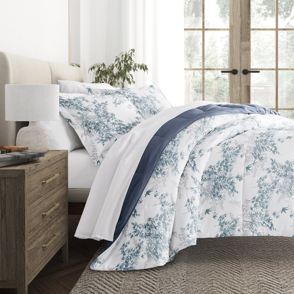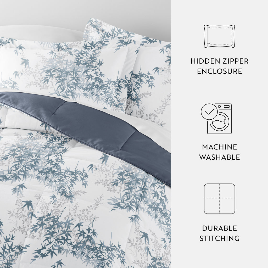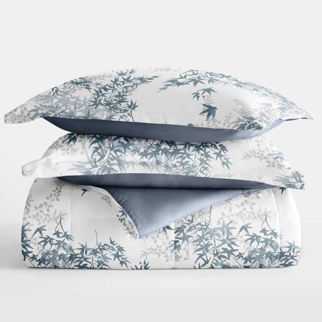 Bamboo Leaves Reversible Patterned Down-Alternative Comforter Set