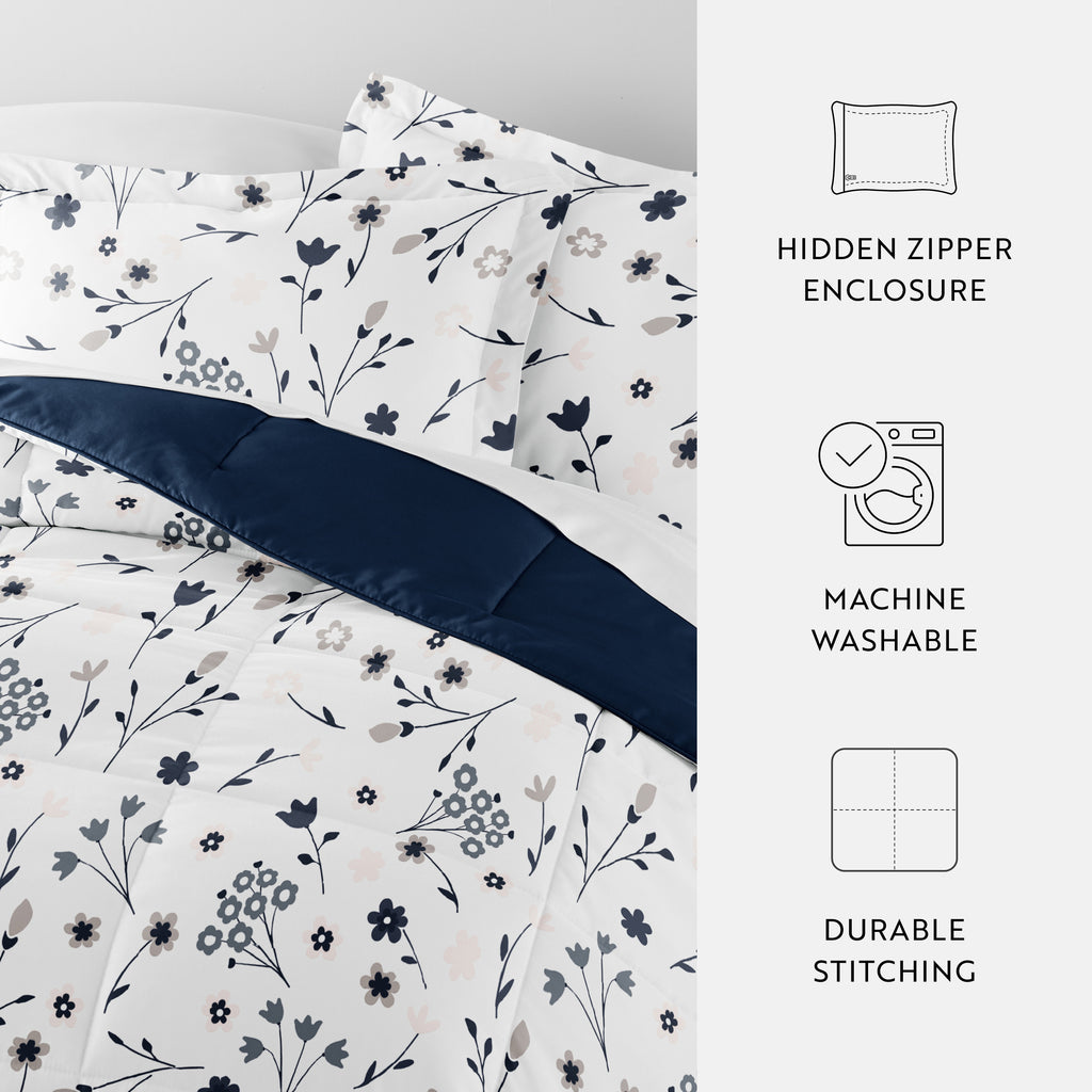 Forget Me Not Reversible Patterned Down-Alternative Comforter Set