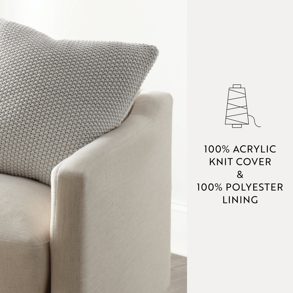 - Pillow Cover Material: 100% Acrylic Cover, Polyester Liner; Pillow Insert Material: 100% Cotton Cover, Polyester Fill