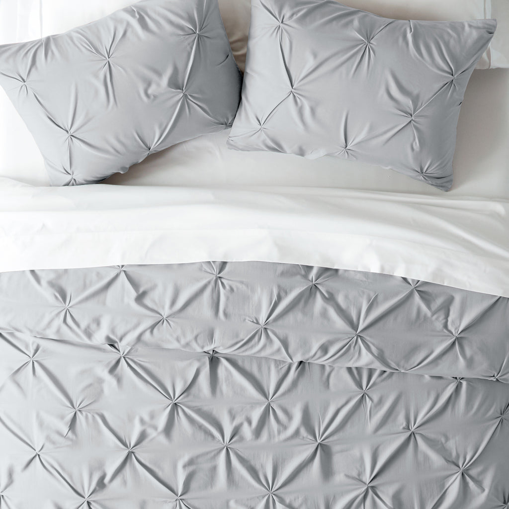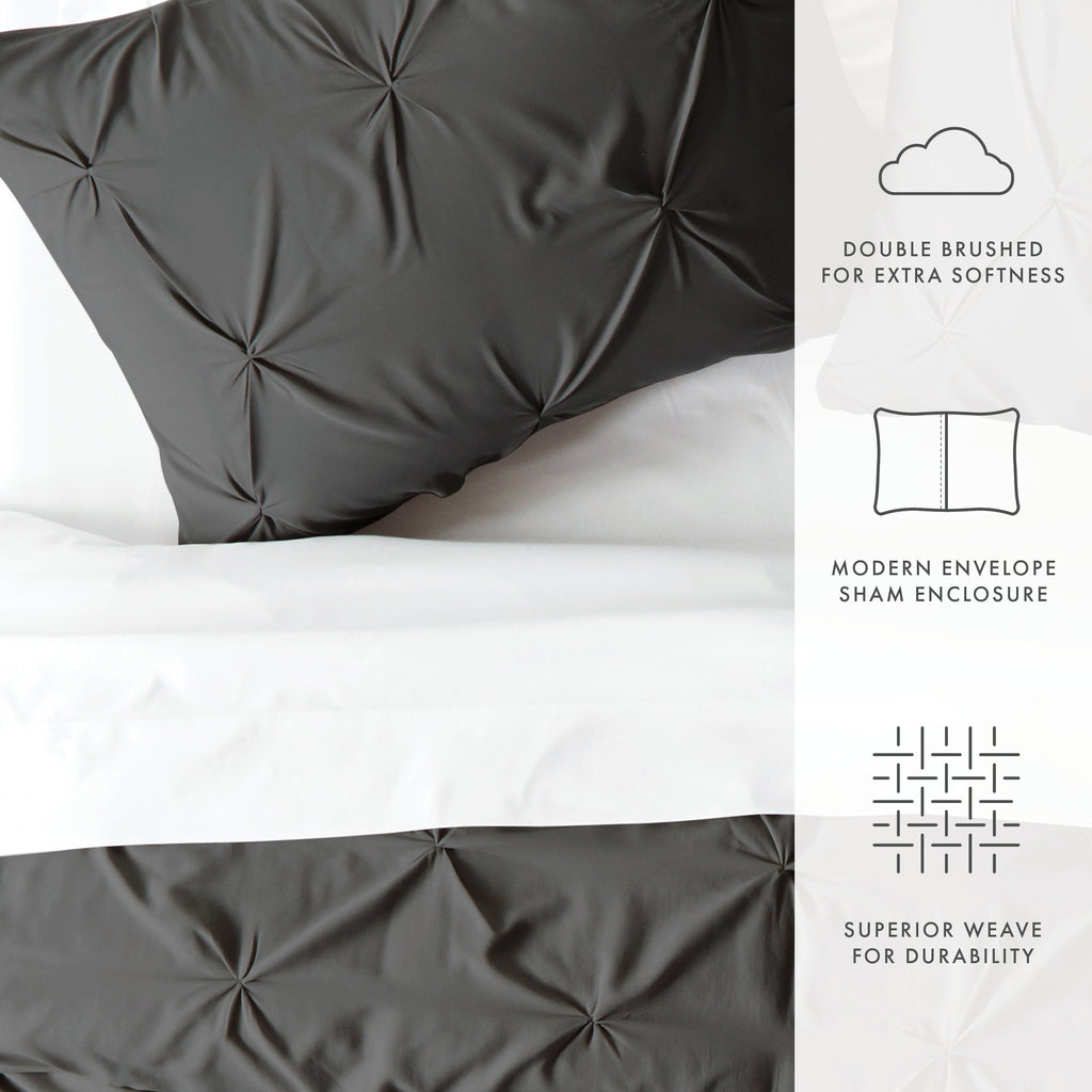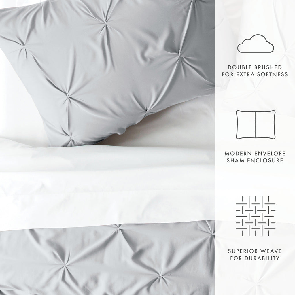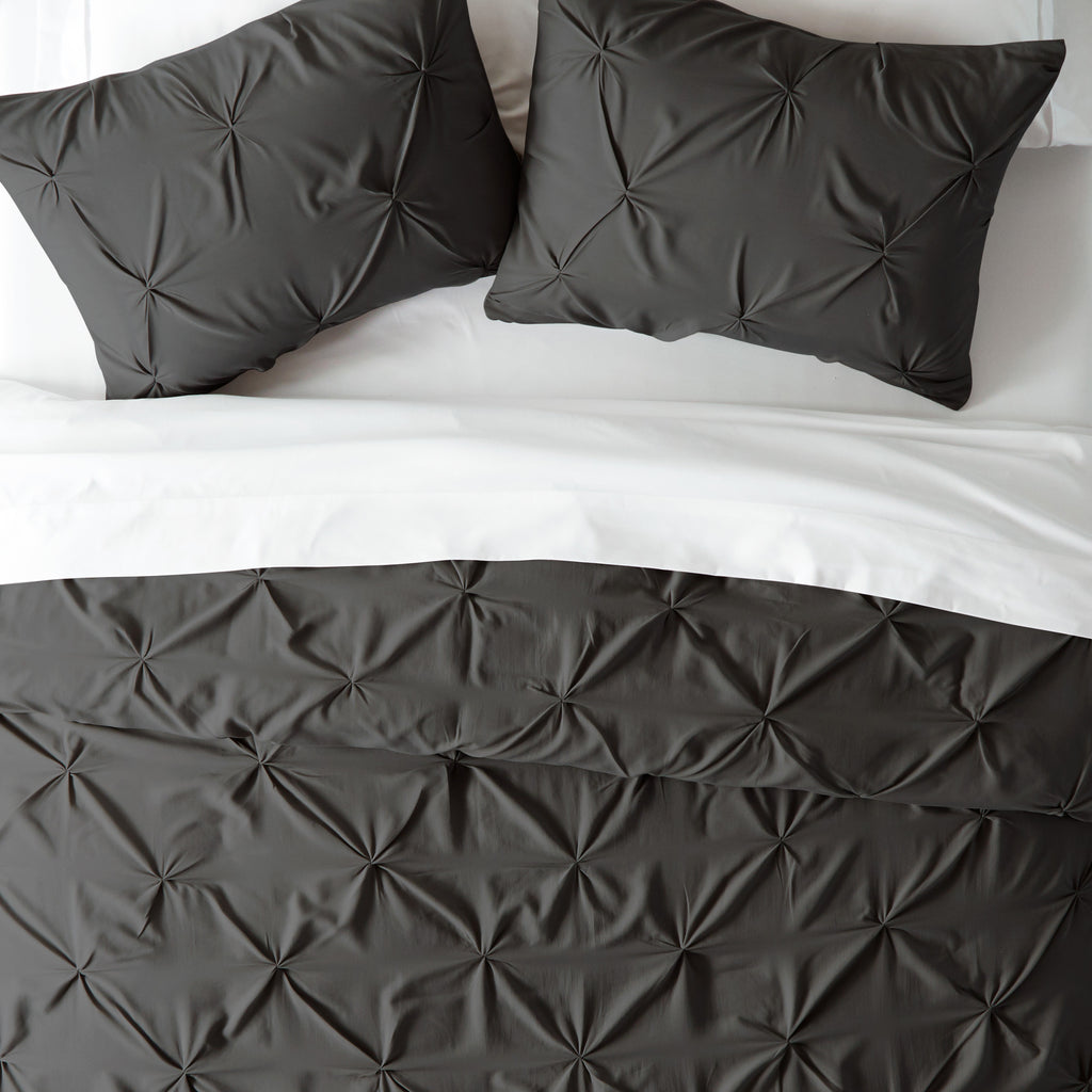 Give your old comforter or duvet insert a refreshing new look with this pinch pleat duvet cover set. This elegant design features premium yarns that are twice as durable as cotton, wrinkle resistant and double-brushed for a super soft, comfortable feel.