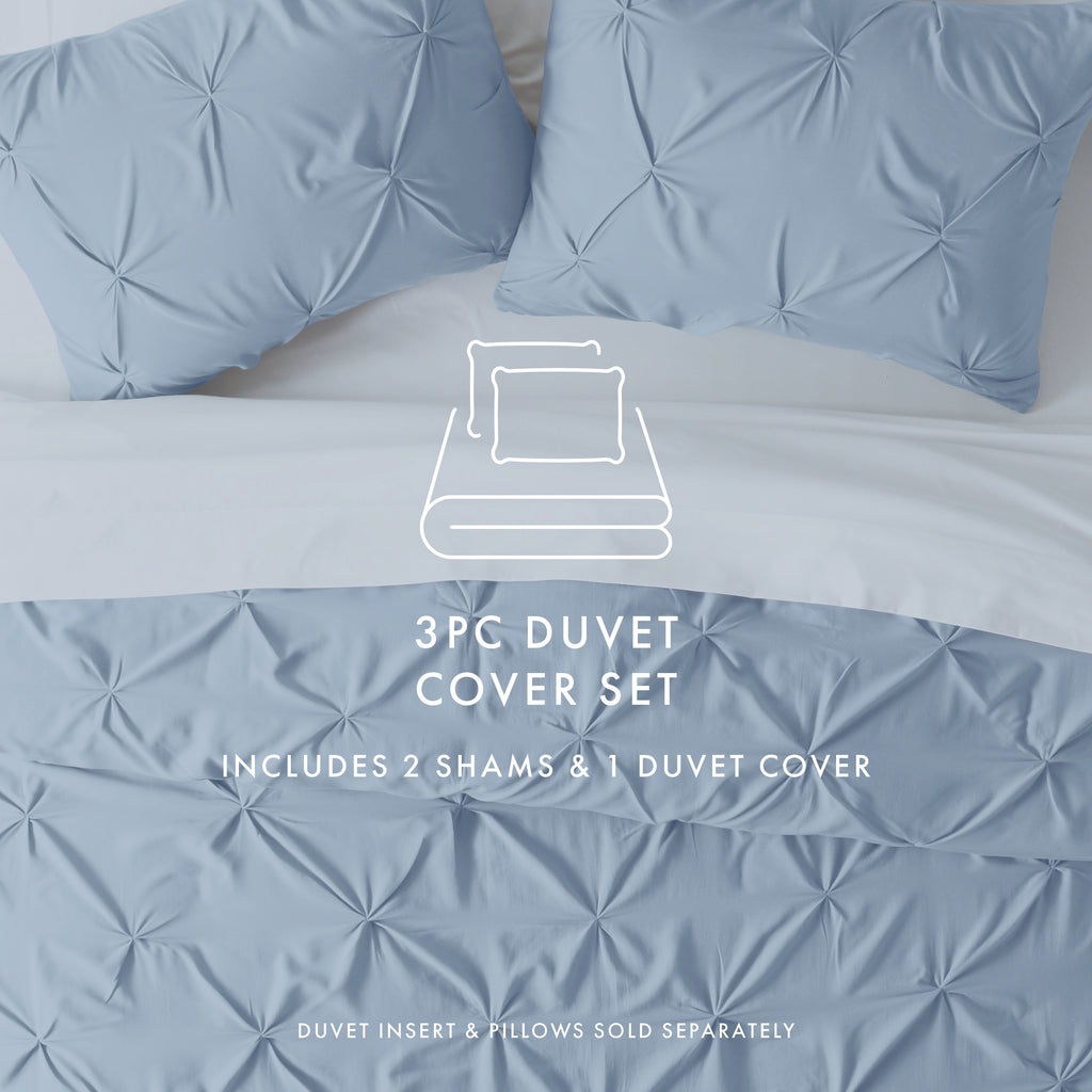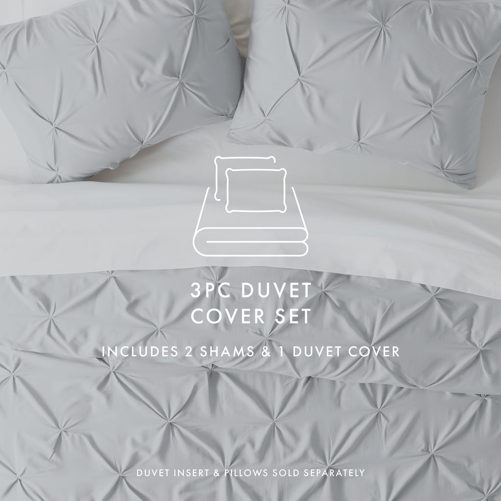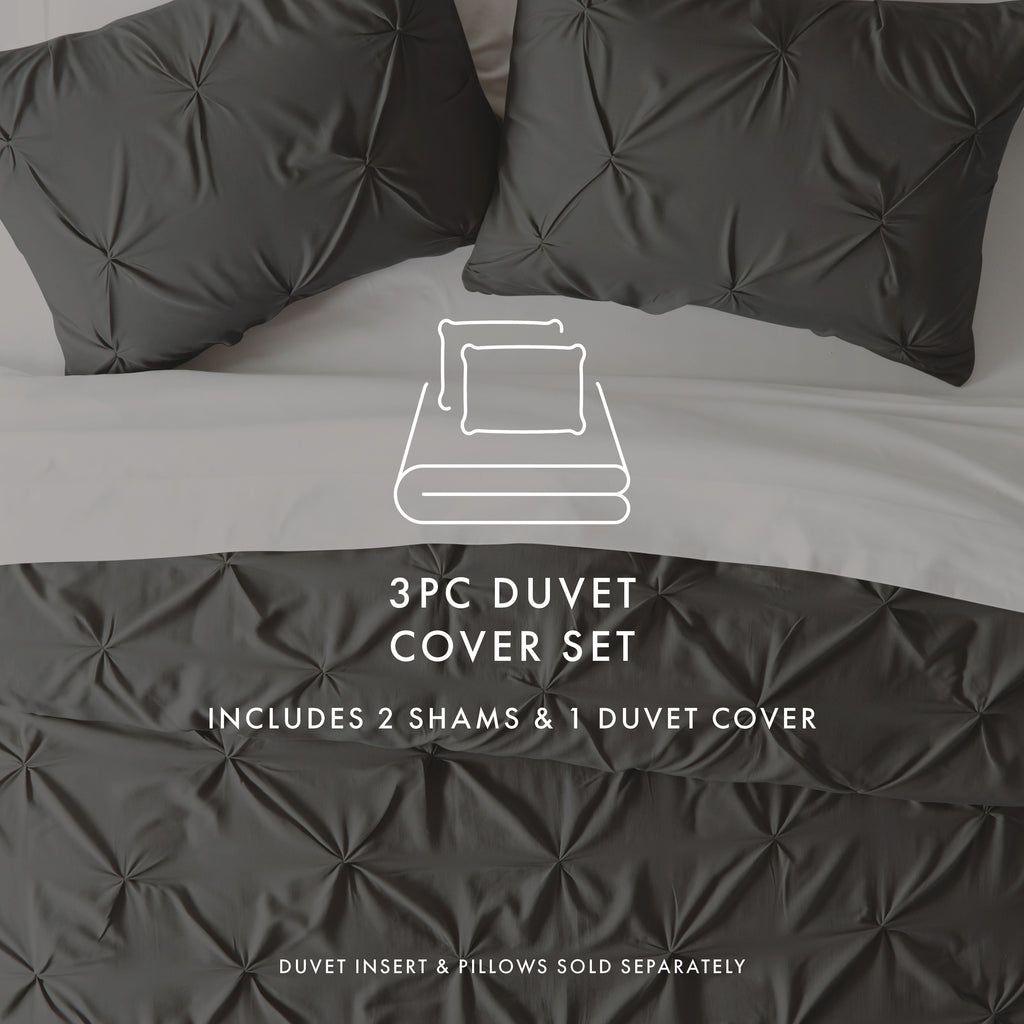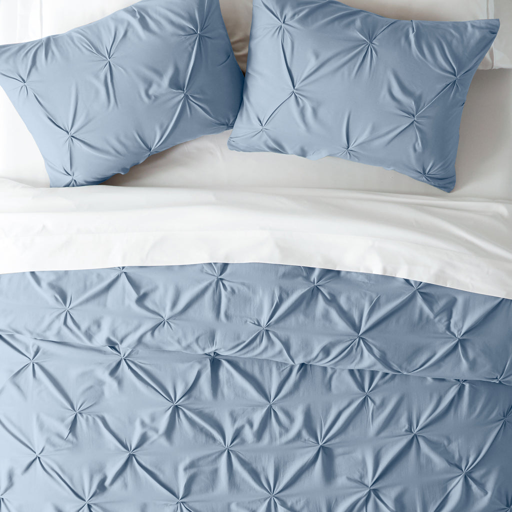 Give your old comforter or duvet insert a refreshing new look with this pinch pleat duvet cover set. This elegant design features premium yarns that are twice as durable as cotton, wrinkle resistant and double-brushed for a super soft, comfortable feel.