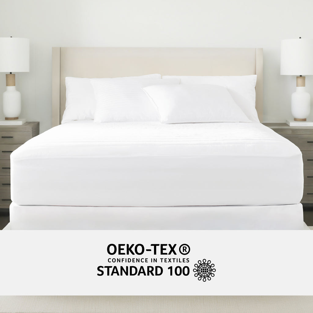 Enhance and protect your mattress with our padded mattress protector, designed with a 100% polyester cover and fill. The padding offers additional comfort while safeguarding against spills, allergens, and dust mites. Its snug fit ensures complete protection without compromising breathability. Keep your sleep environment clean and healthy with this durable, easy-to-clean protector, extending the life of your mattress.