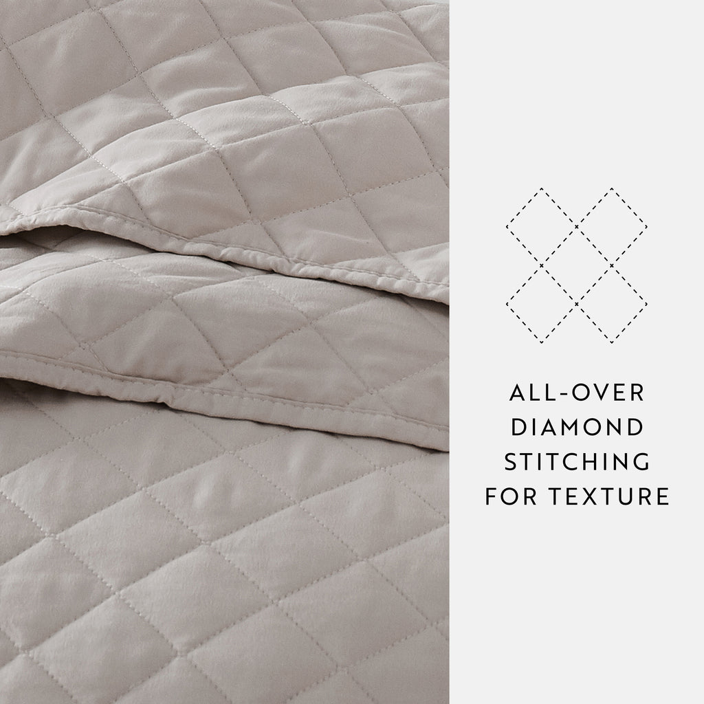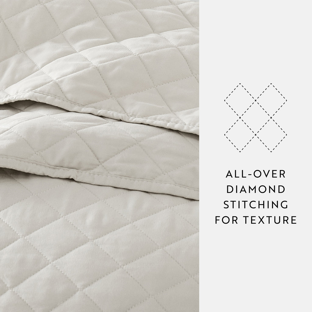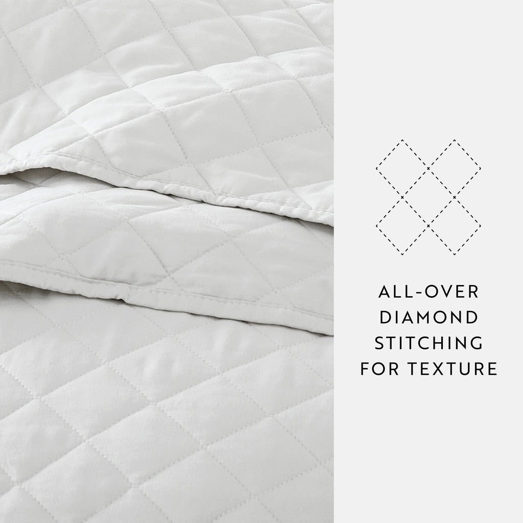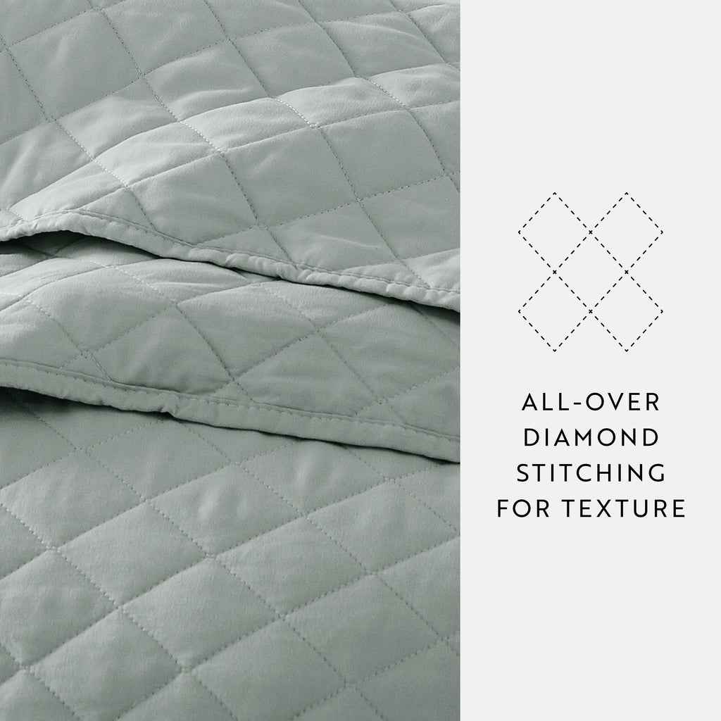 Give your room a comfy new addition with this ultra soft quilted coverlet set with shams! We've generously filled it with artificial down, and each piece is double brushed to give it that super soft, cozy feel. The beautiful, subtle quilted stitchings add dimension and a gorgeous touch to any bedroom. Spun from our premium yarns, this set is twice as strong as cotton, wrinkle resistant and a perfect option for those with allergies or sensitive skin. Available in 3 elegant stitched designs of striped, floral and diamond, elevating the look and feel of any bedroom. The sets are available in 6 gorgeous colors, it'll be hard to pick only one for your bed refresh!