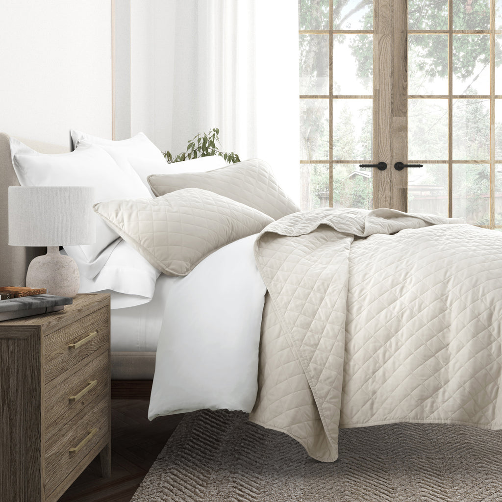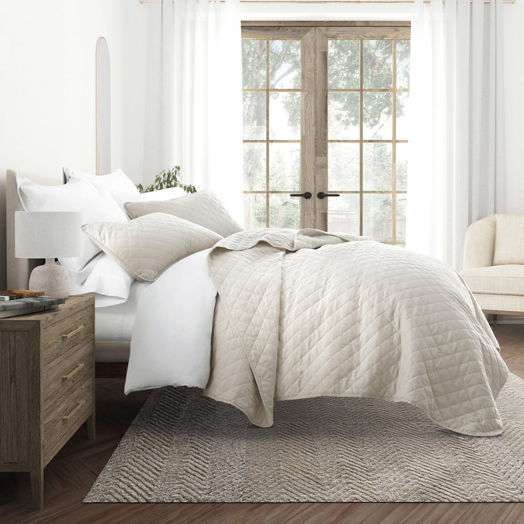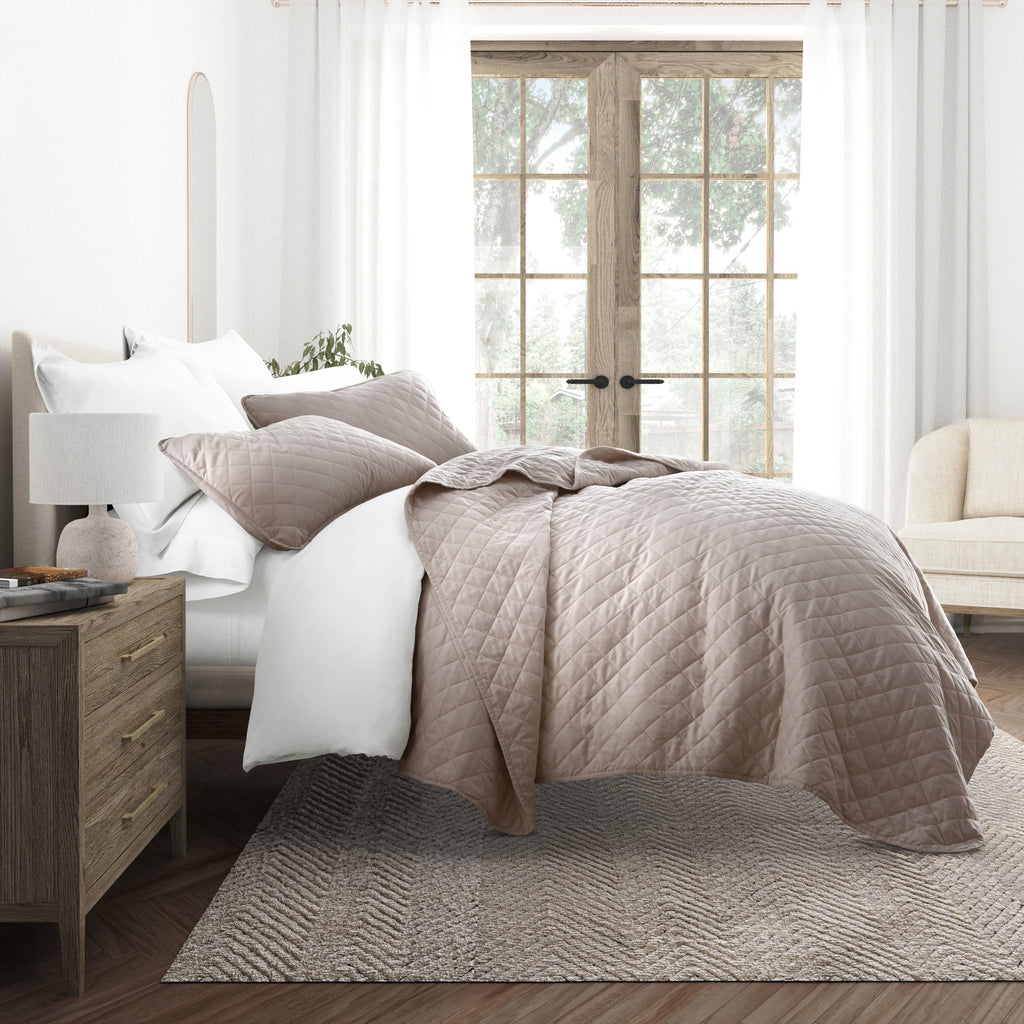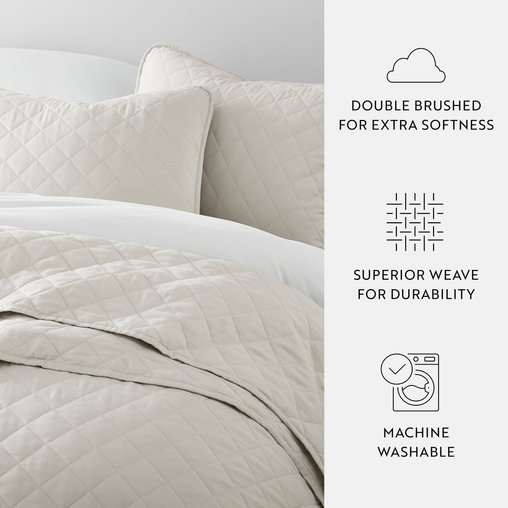 Give your room a comfy new addition with this ultra soft quilted coverlet set with shams! We've generously filled it with artificial down, and each piece is double brushed to give it that super soft, cozy feel. The beautiful, subtle quilted stitchings add dimension and a gorgeous touch to any bedroom. Spun from our premium yarns, this set is twice as strong as cotton, wrinkle resistant and a perfect option for those with allergies or sensitive skin. Available in 3 elegant stitched designs of striped, floral and diamond, elevating the look and feel of any bedroom. The sets are available in 6 gorgeous colors, it'll be hard to pick only one for your bed refresh!