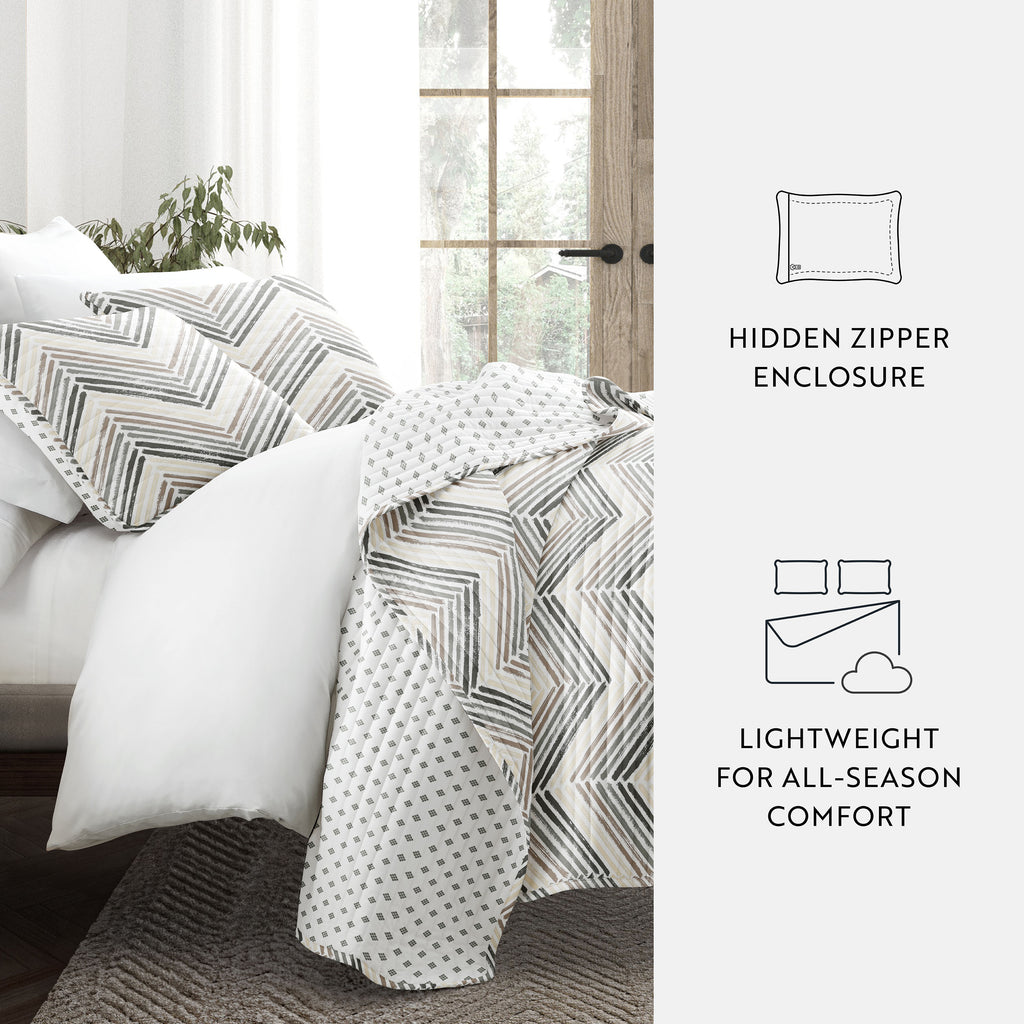Painted Chevron Patterned Reversible Quilted Coverlet Set