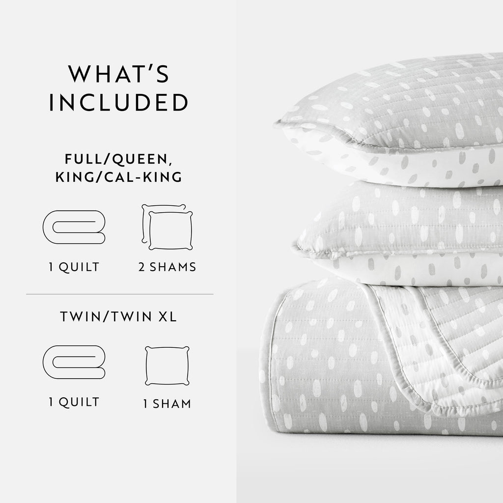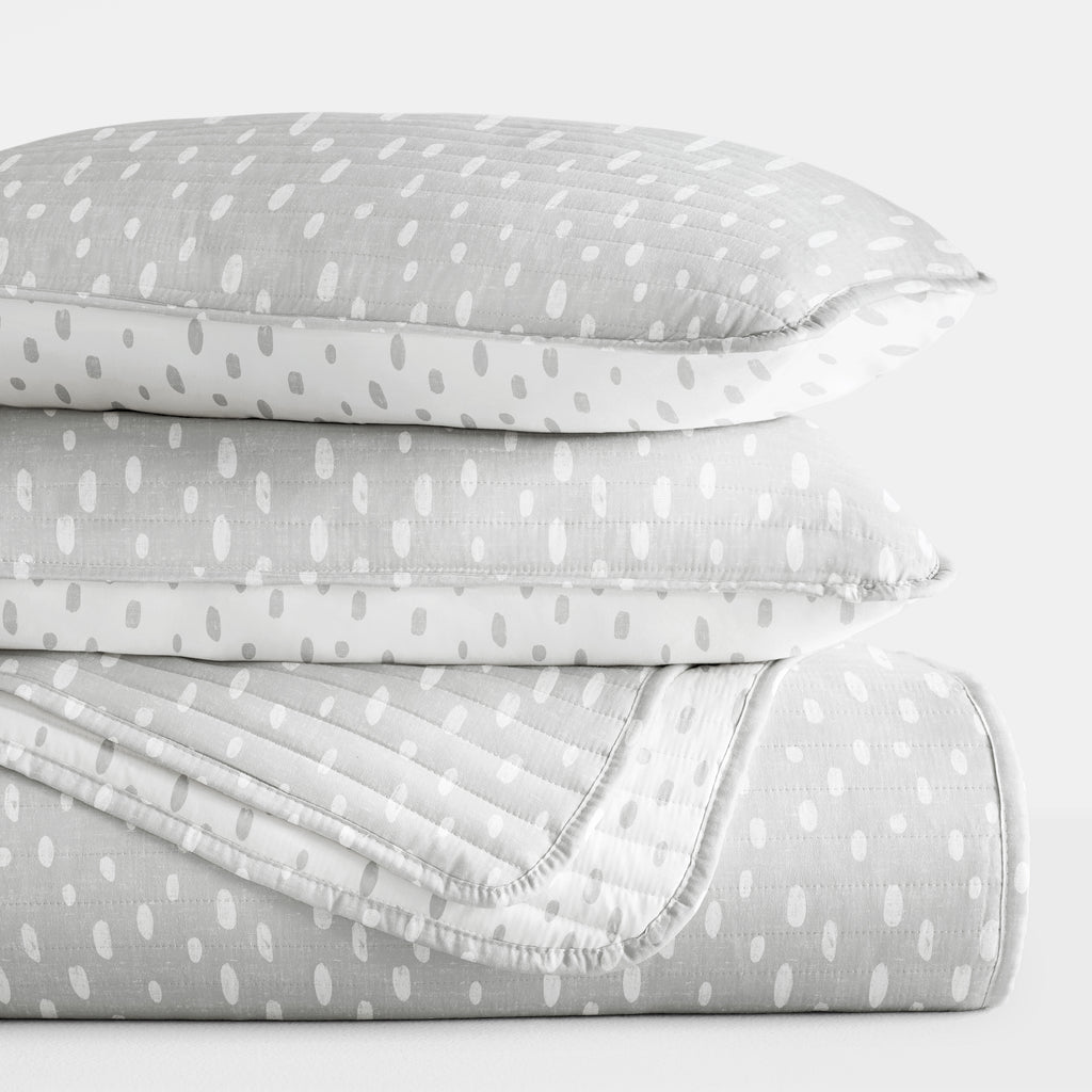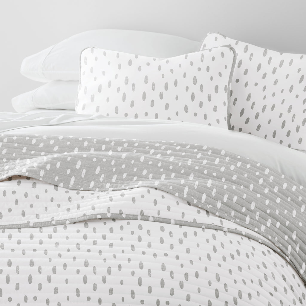 Neutral Dots Patterned Reversible Quilted Coverlet Set