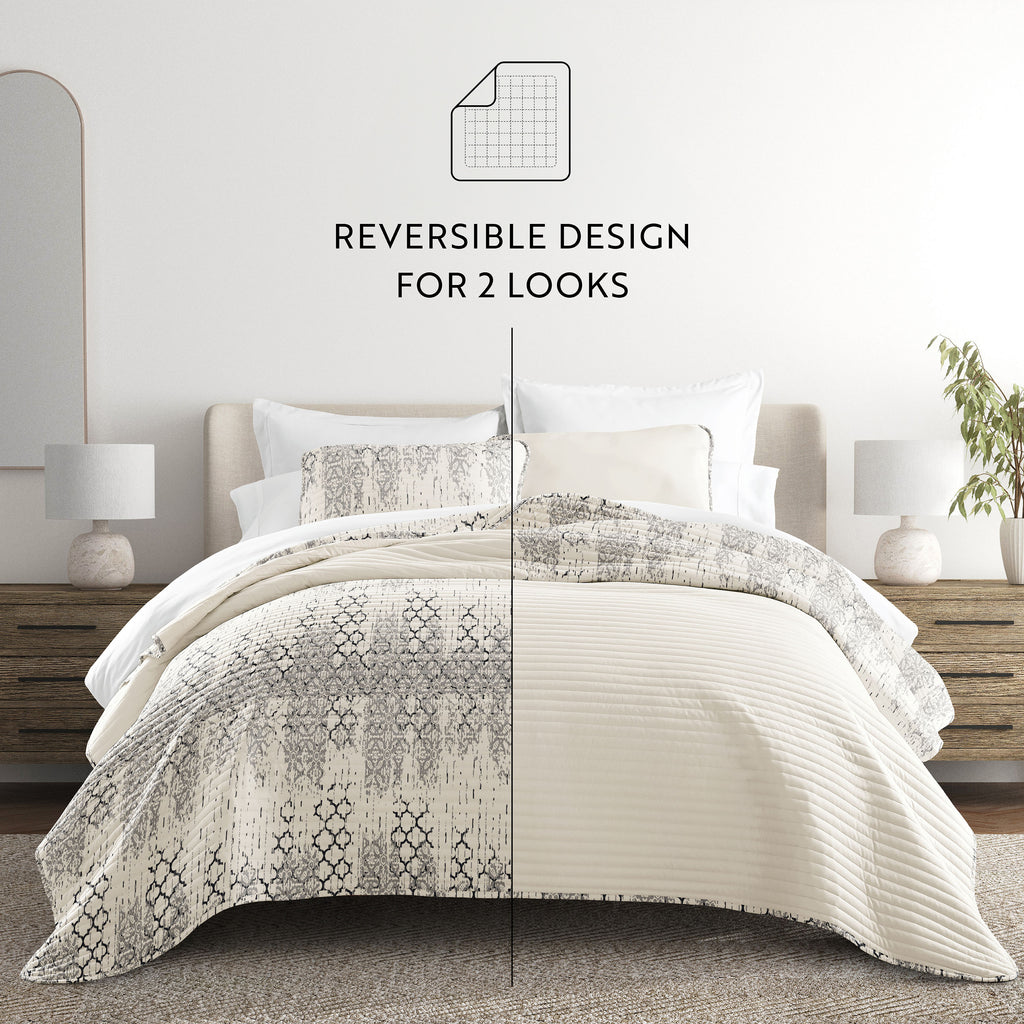 Aztec Inspired Patterned Reversible Quilted Coverlet Set