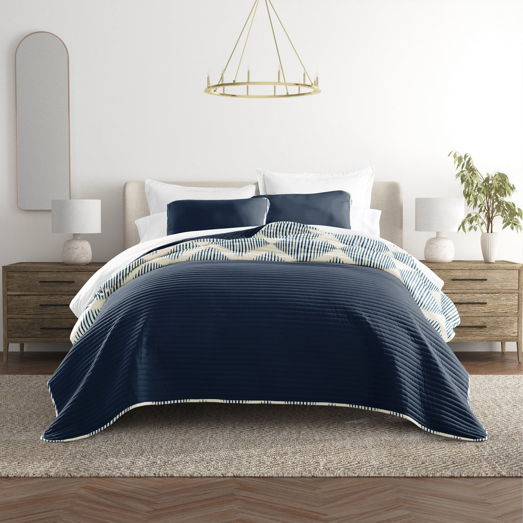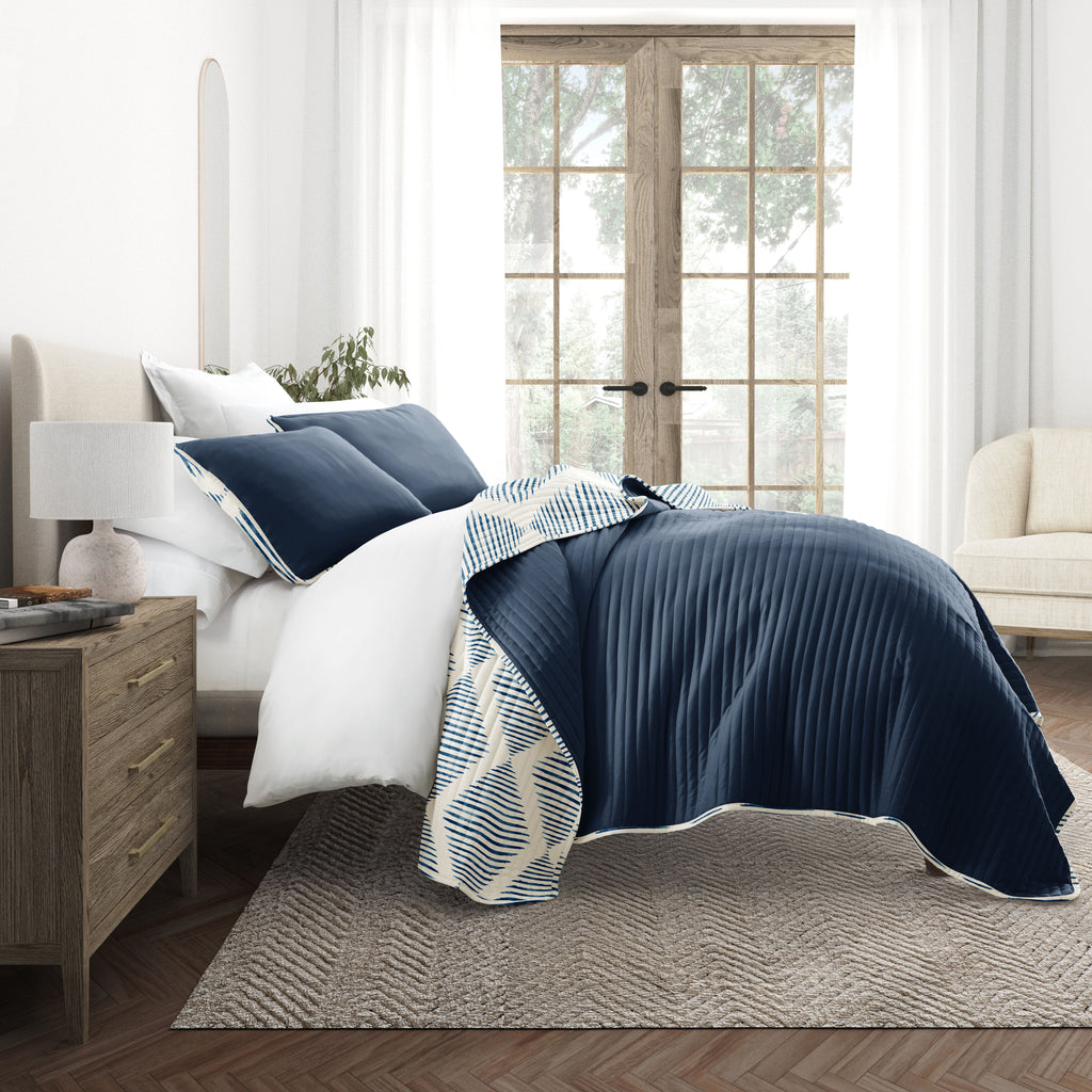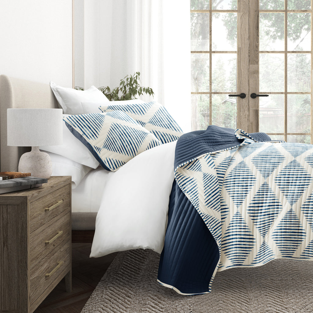 Distressed Diamond Patterned Reversible Quilted Coverlet Set