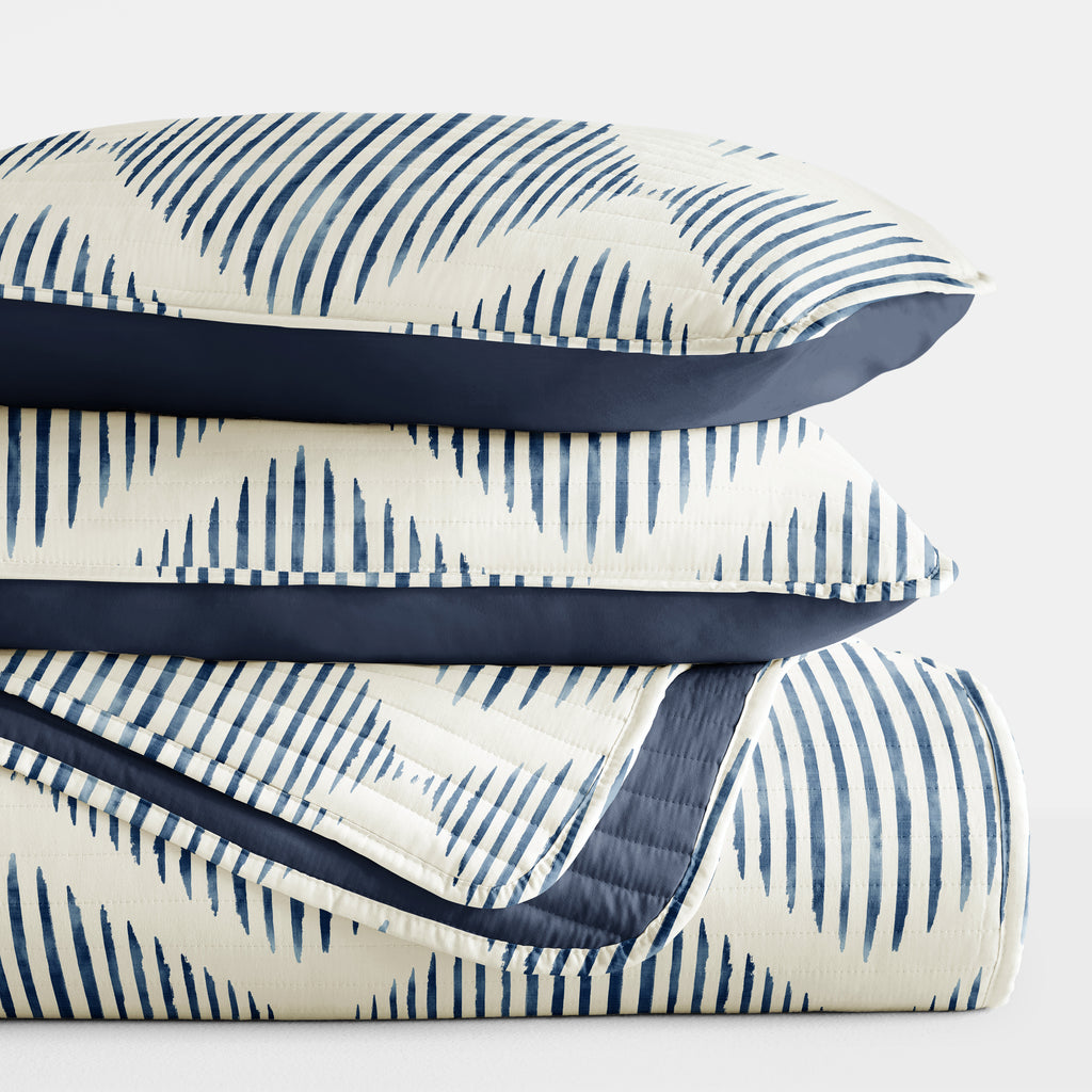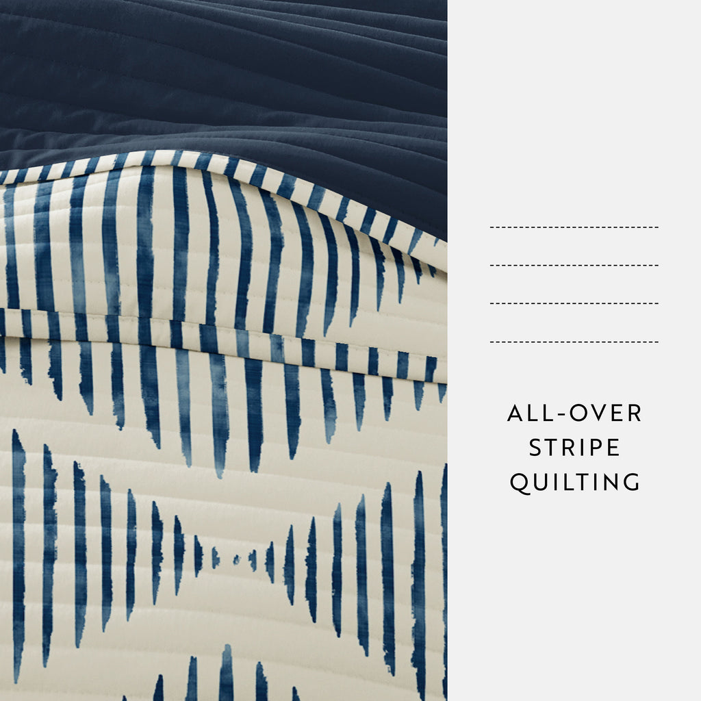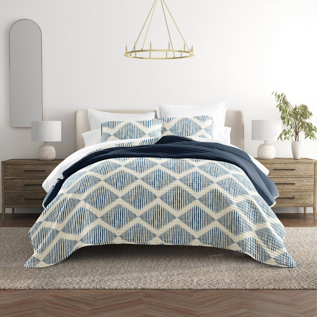 Distressed Diamond Patterned Reversible Quilted Coverlet Set