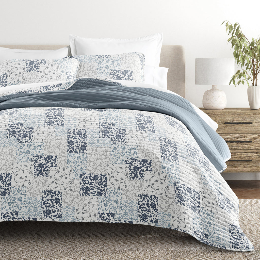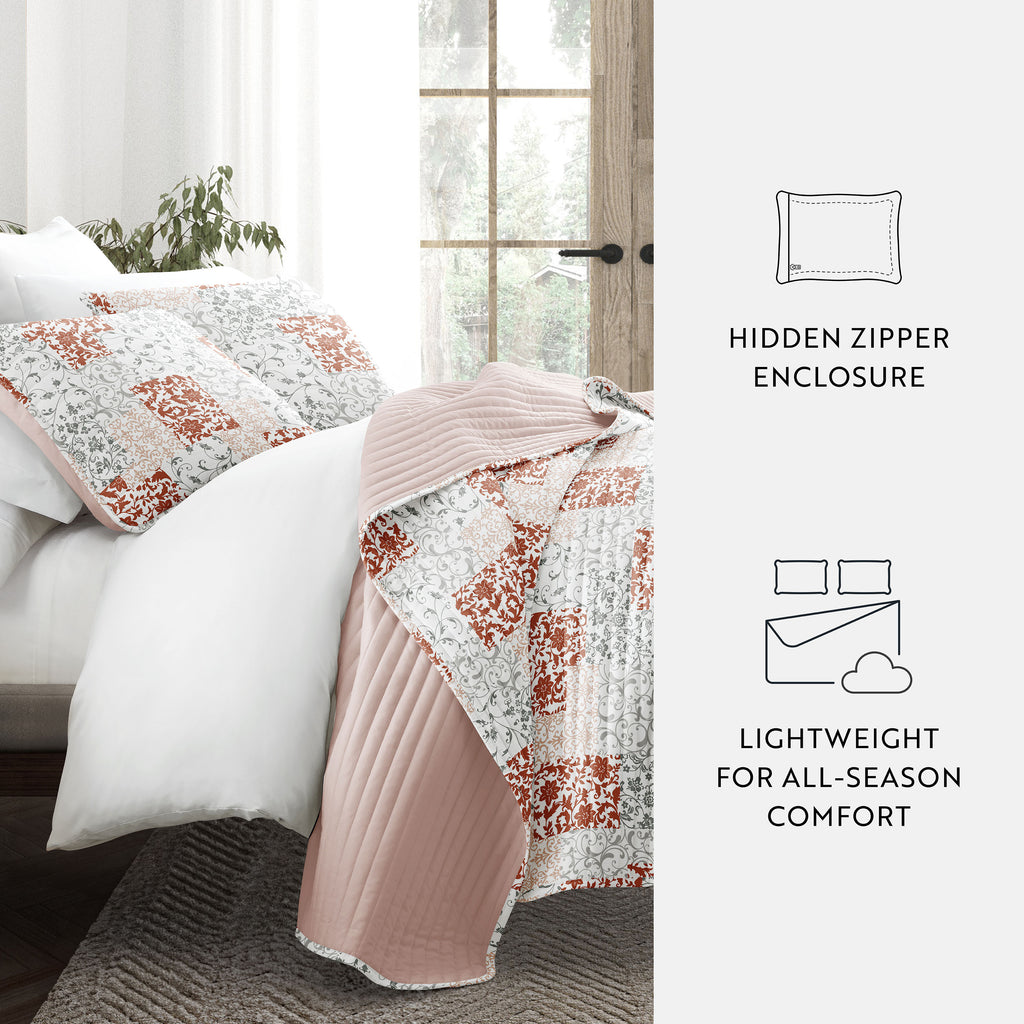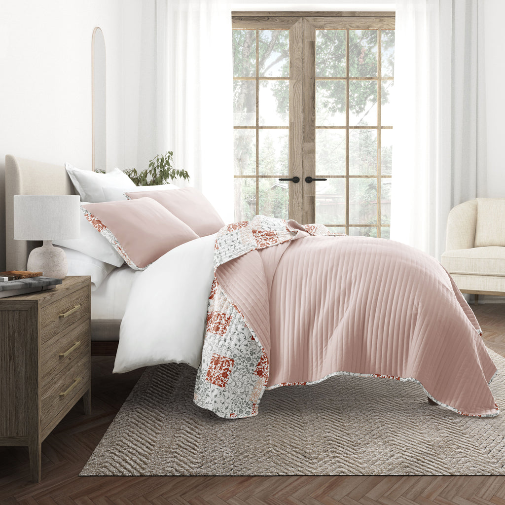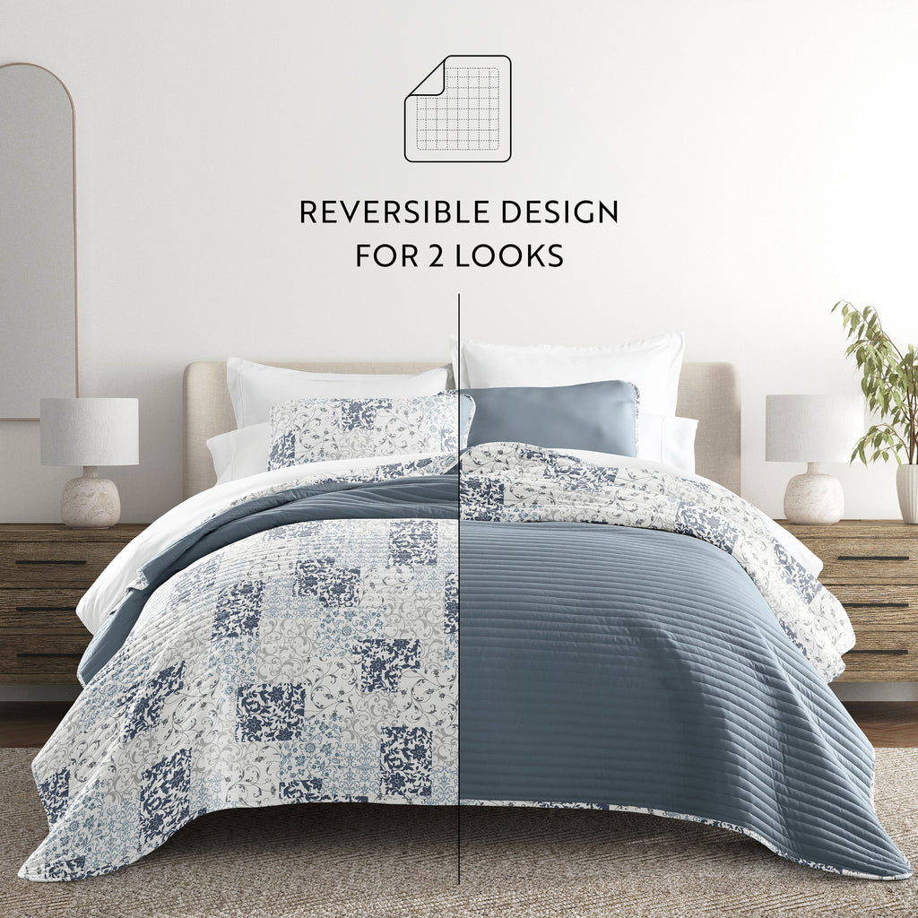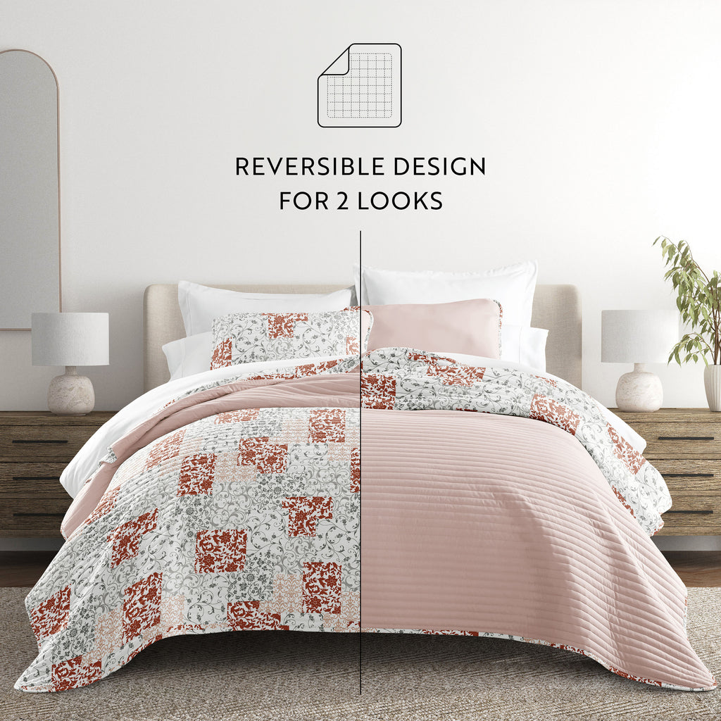 Patchwork Patterned Reversible Quilted Coverlet Set
