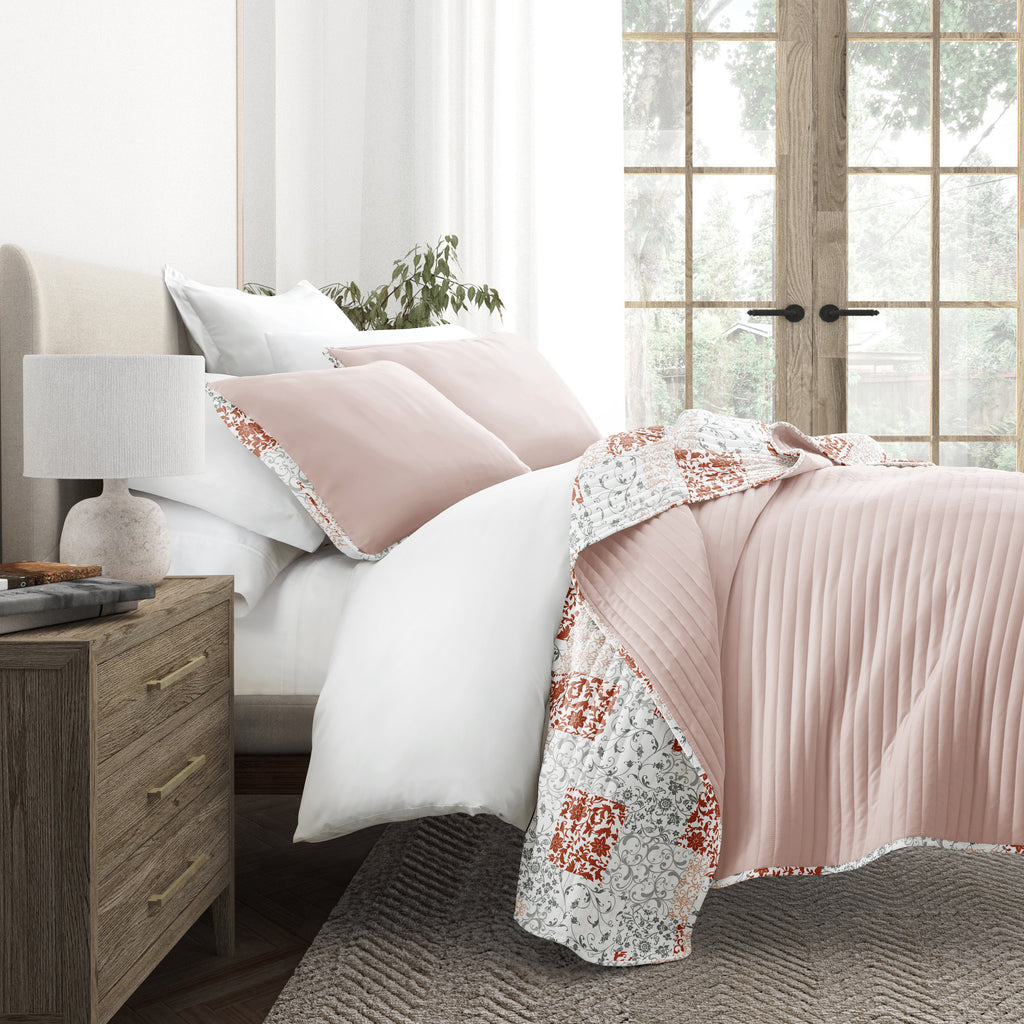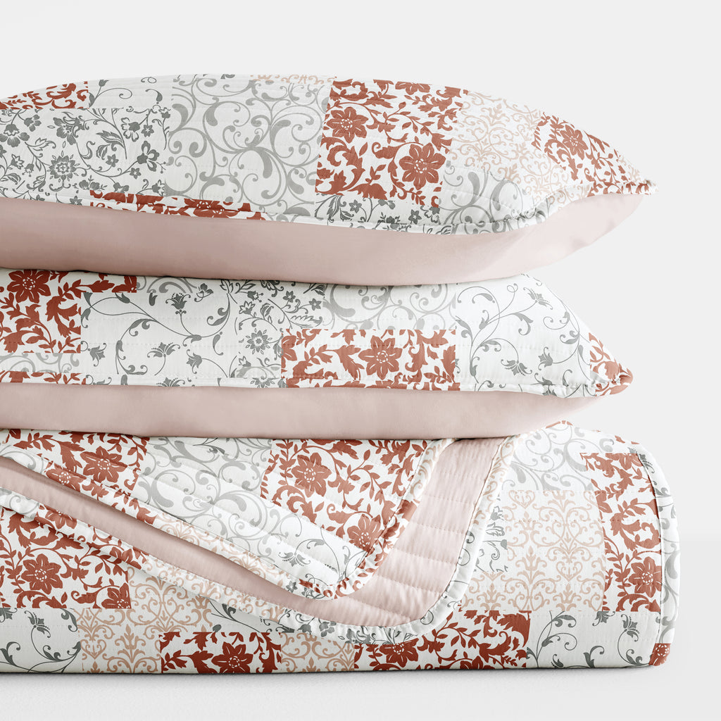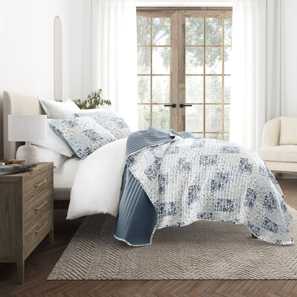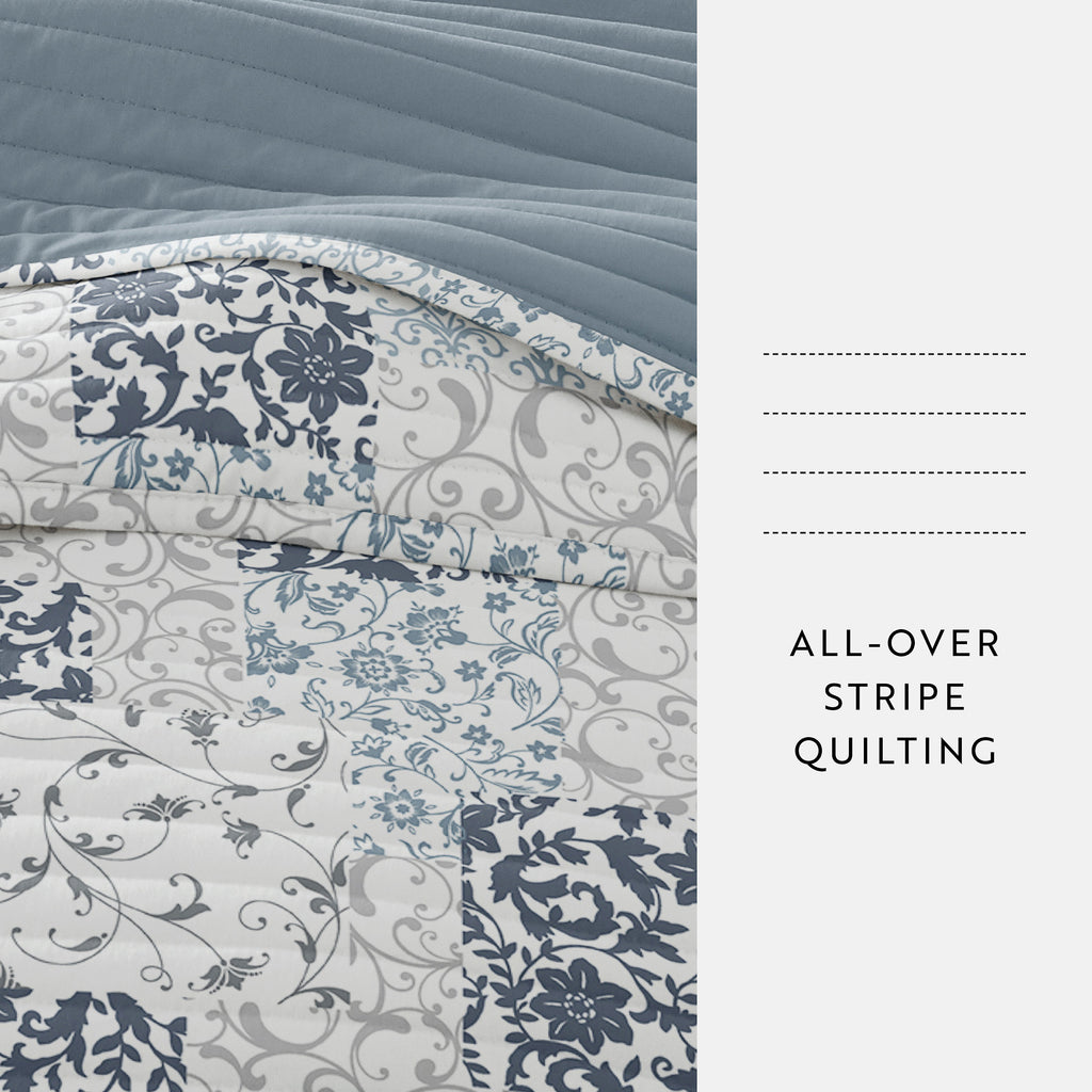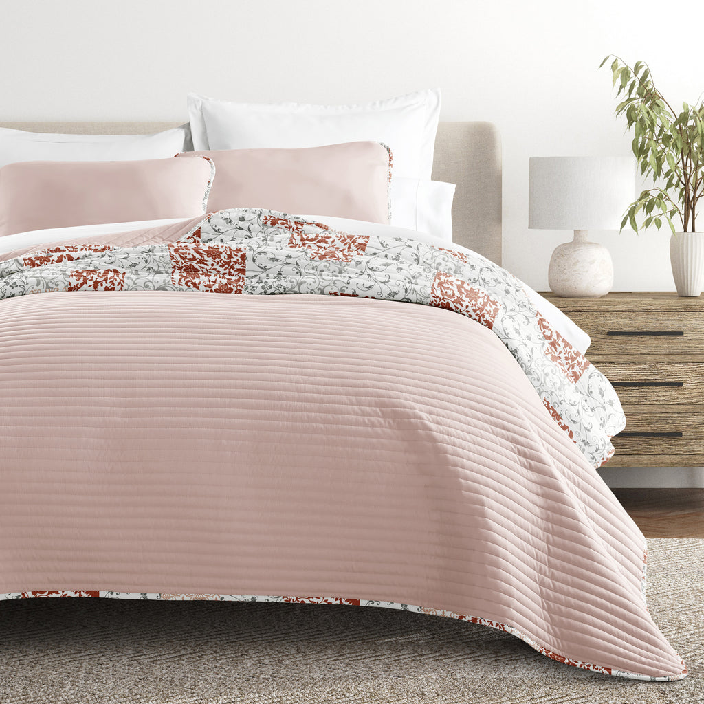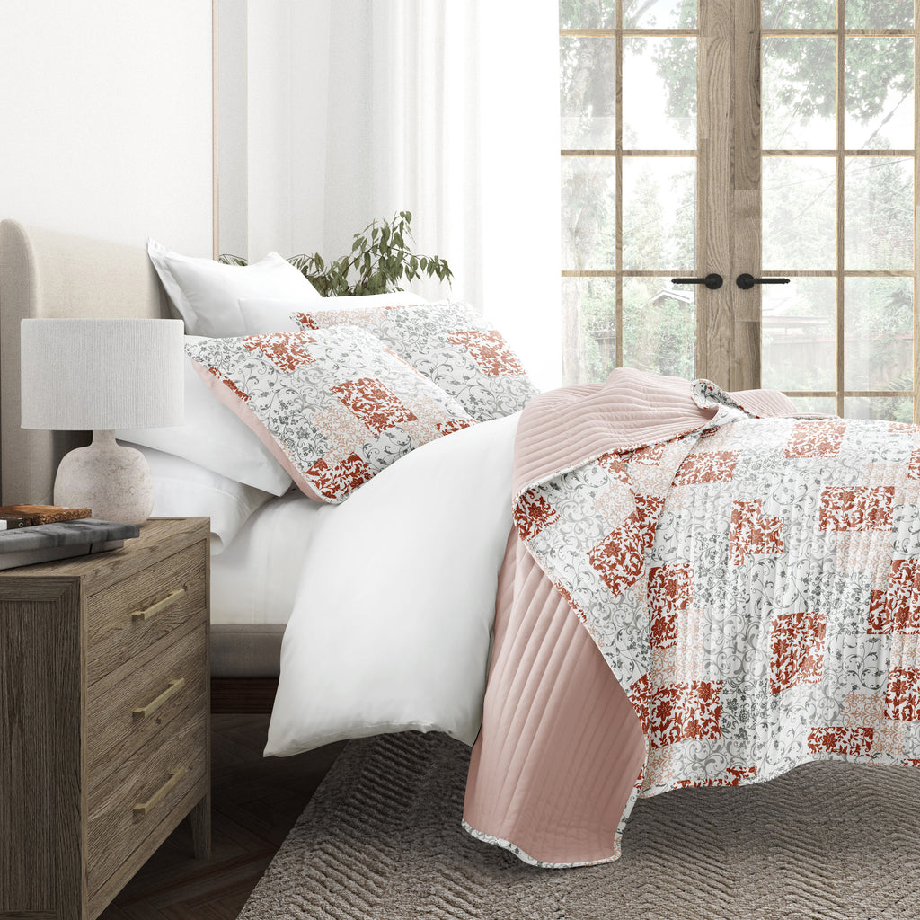 Patchwork Patterned Reversible Quilted Coverlet Set