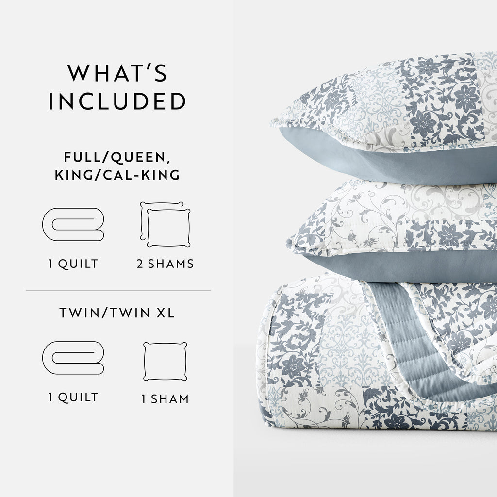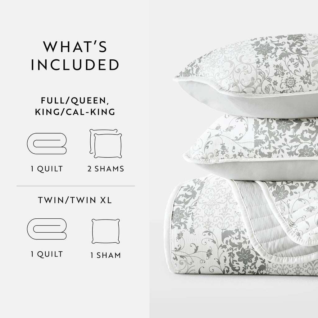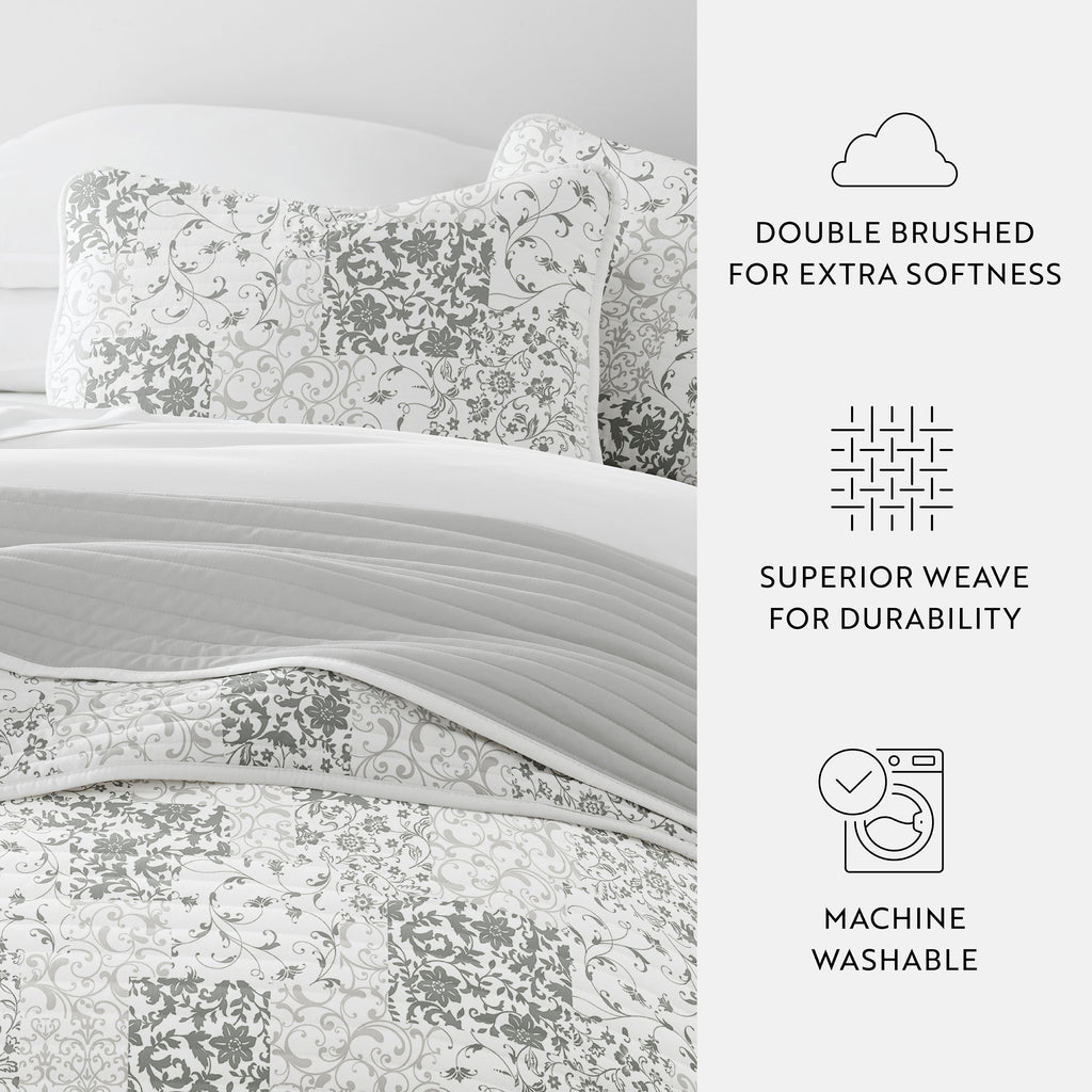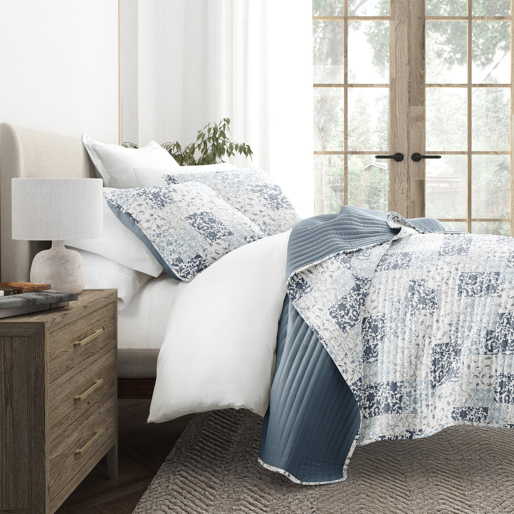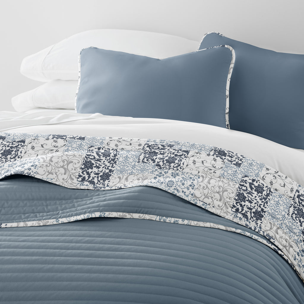 Patchwork Patterned Reversible Quilted Coverlet Set