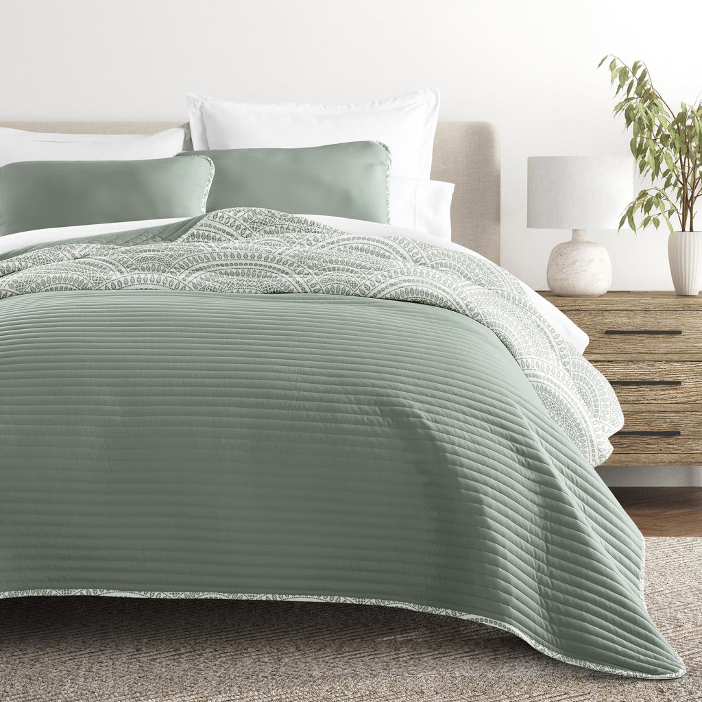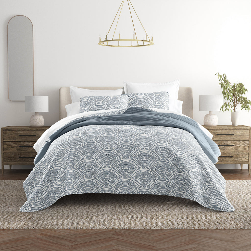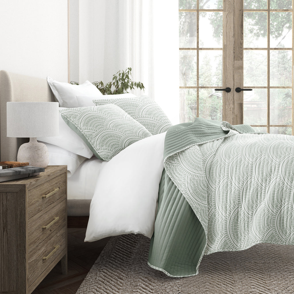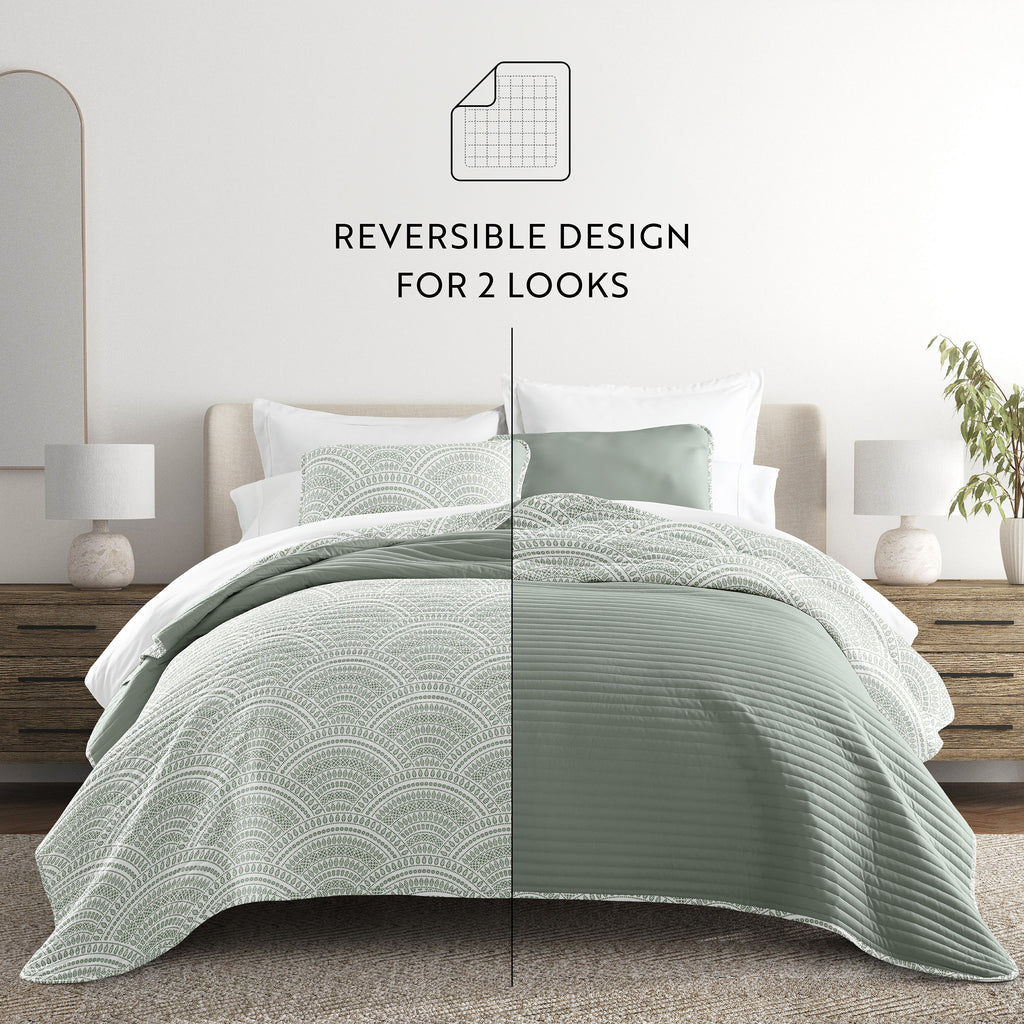 Scalloped Patterned Reversible Quilted Coverlet Set