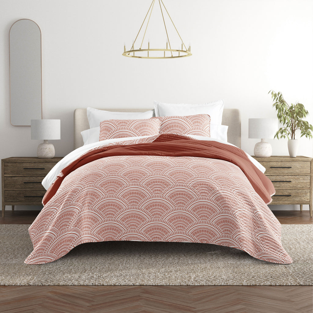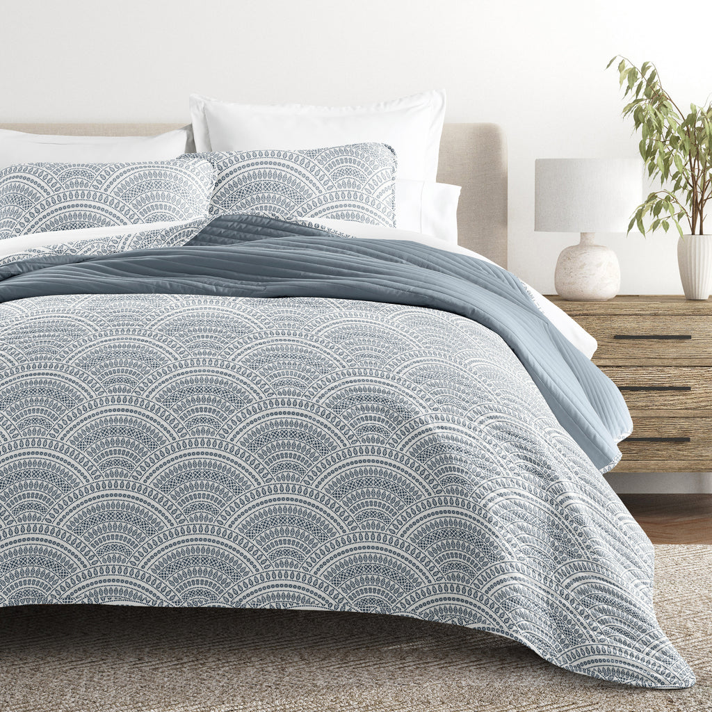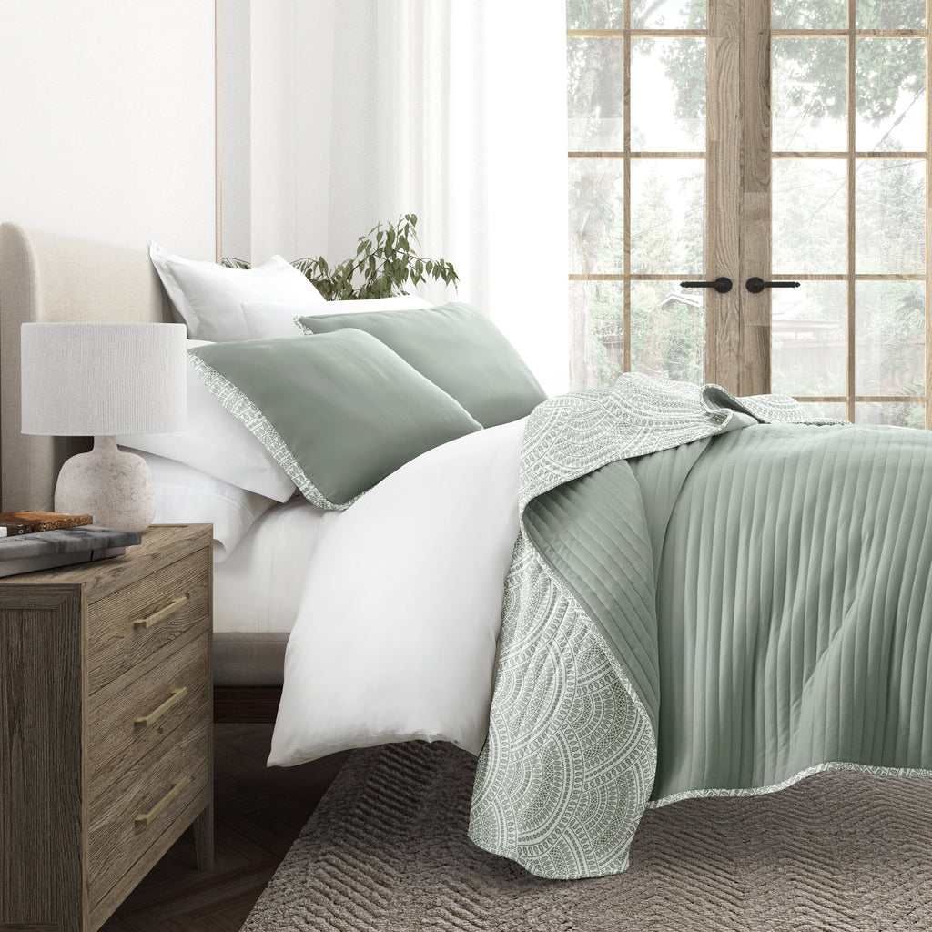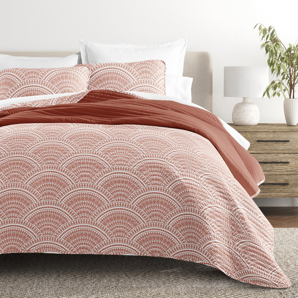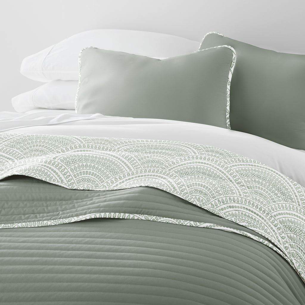 Scalloped Patterned Reversible Quilted Coverlet Set