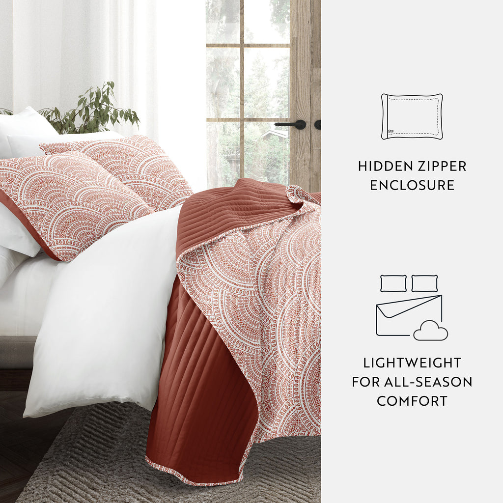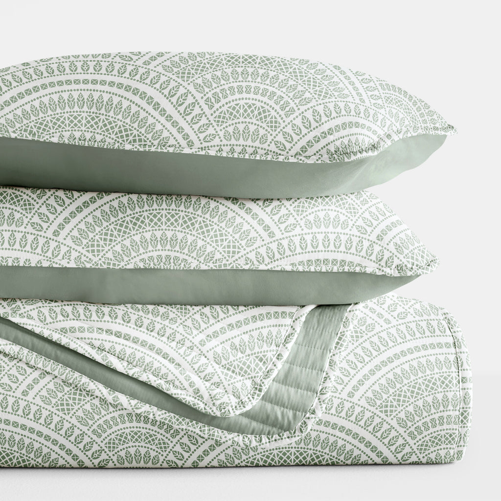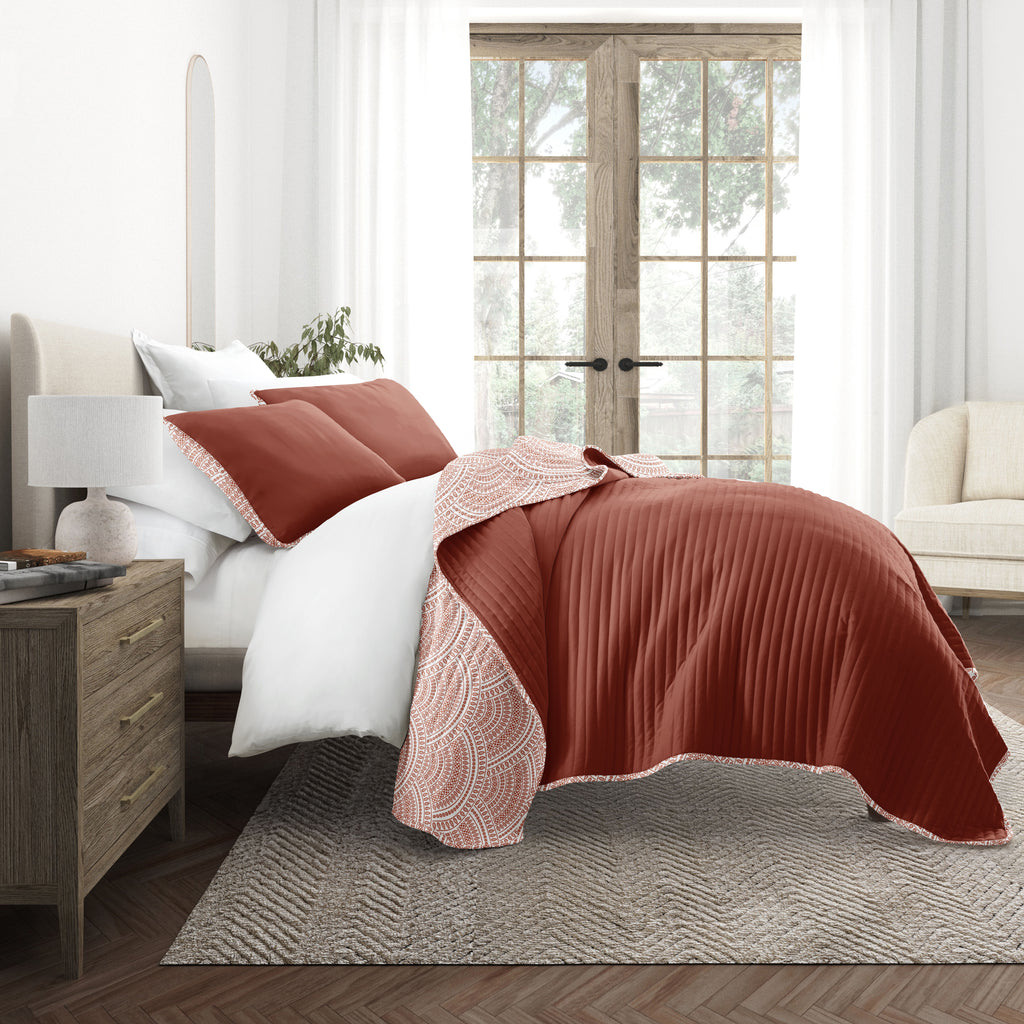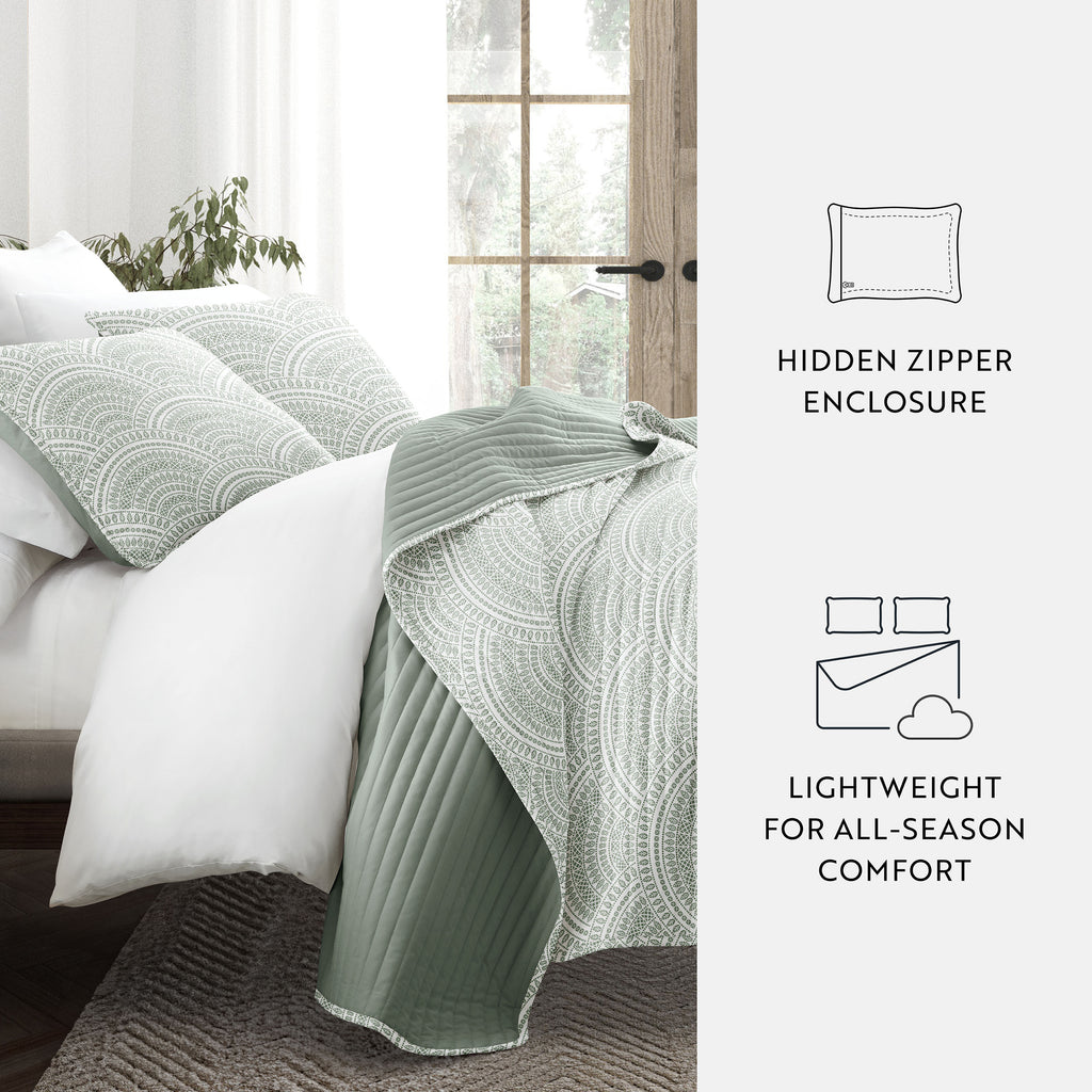 Scalloped Patterned Reversible Quilted Coverlet Set