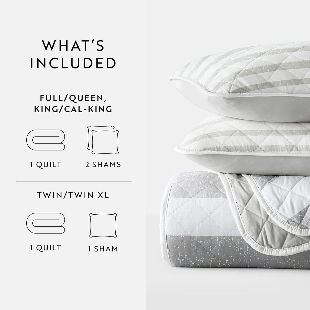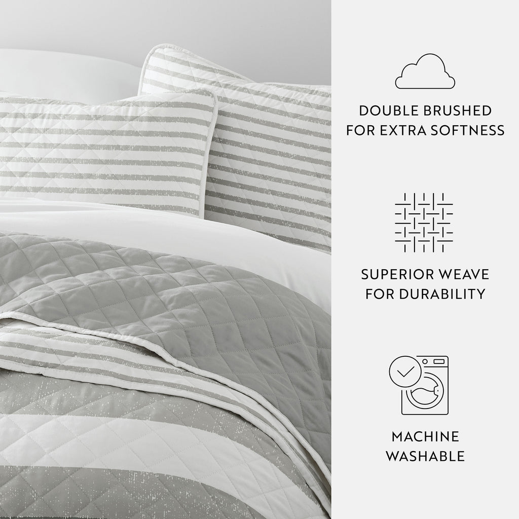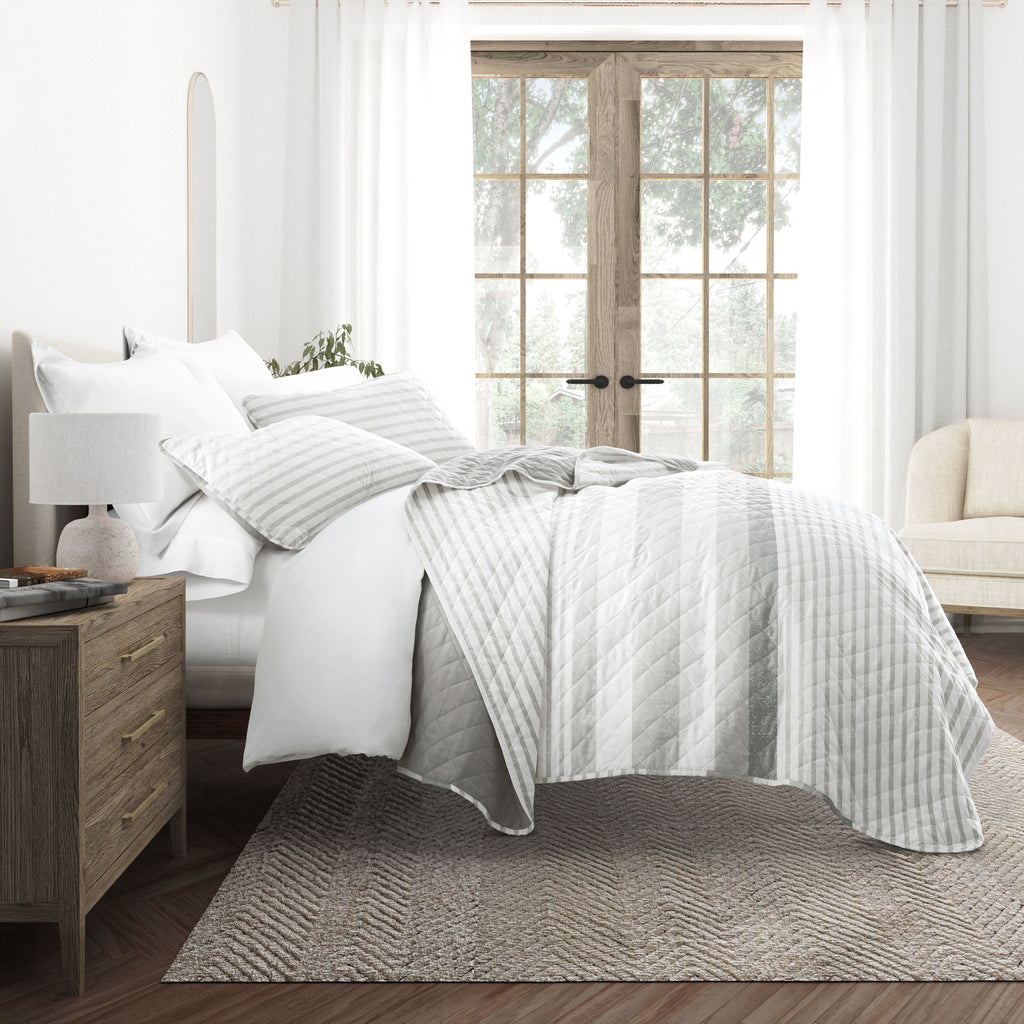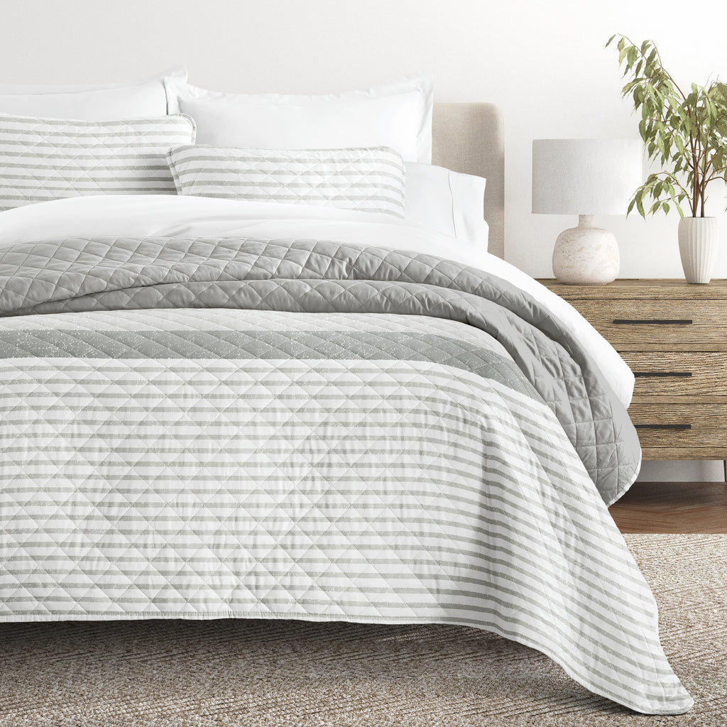 Summer Stripes Patterned Reversible Quilted Coverlet Set
