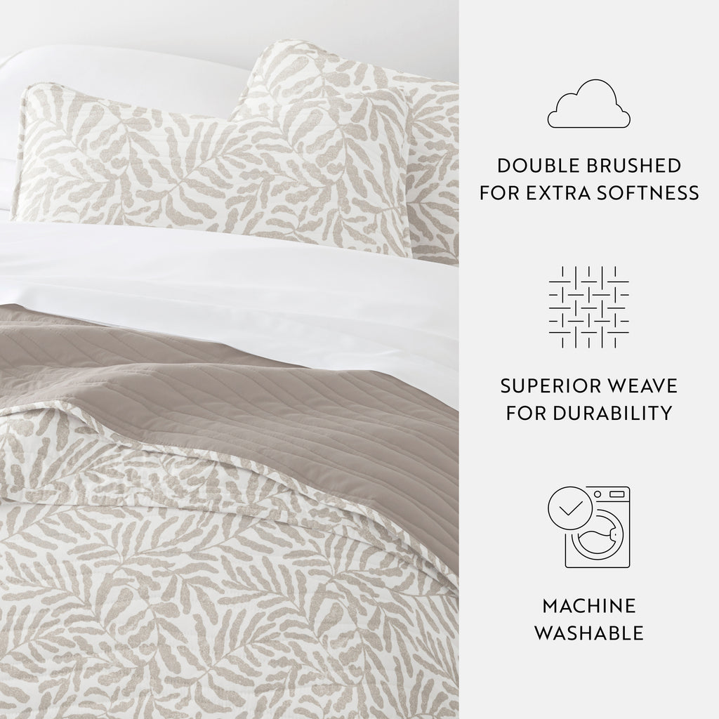 Give your room a comfy new addition with this super soft reversible microfiber quilt and sham set. We've generously filled it with artificial down, and each piece is double brushed to give it that super soft, cozy feel. The beautiful, subtle quilted stitchings add dimension and a gorgeous touch to any bedroom. Spun from our premium yarns, this set is twice as strong as cotton, wrinkle resistant and a perfect option for those with allergies or sensitive skin. The reversibility gives each side its own unique look. Available in a variety of beautiful designer patterns, making it easy to refresh any bedroom.