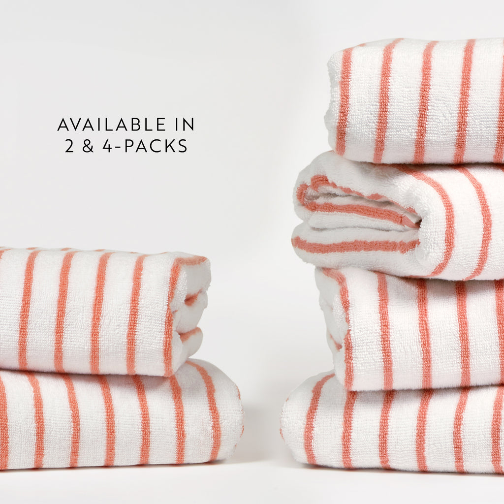 Elevate your beach experience with our Cabana Stripe Beach & Pool Towel Sets, crafted from 100% ring spun cotton with a luxurious weight of 450 GSM. These towels offer exceptional softness and absorbency. Perfect for lounging by the pool or soaking up the sun at the beach, our Cabana Beach Towels come in convenient packs of 2 or 4, ensuring you always have enough to share. Enjoy the perfect blend of comfort and style with these premium beach towels, designed to make your summer days even more enjoyable.