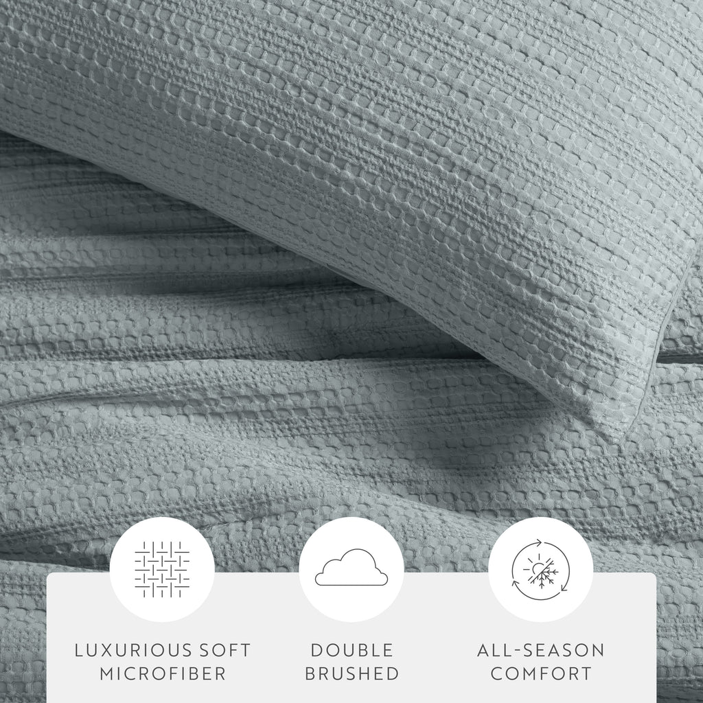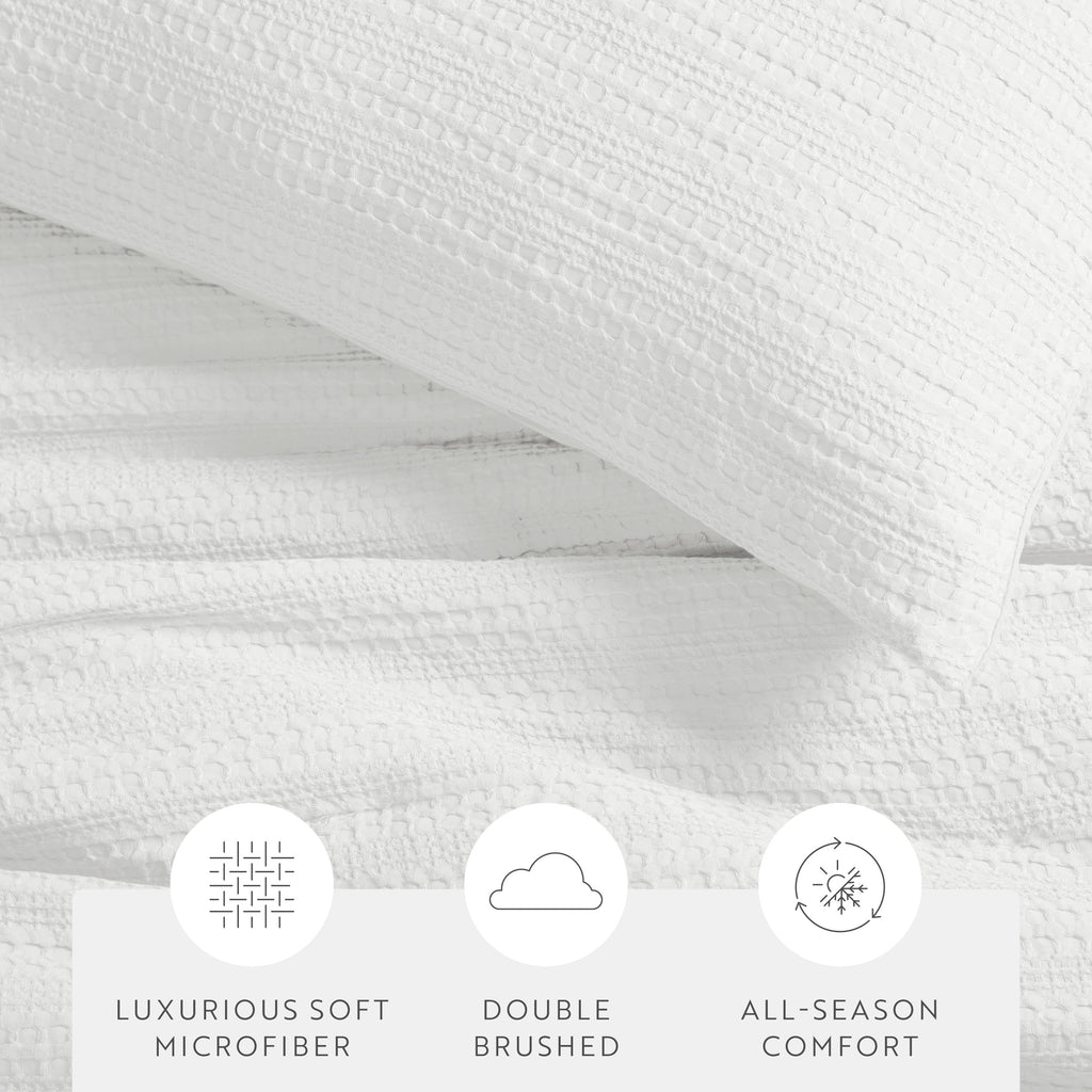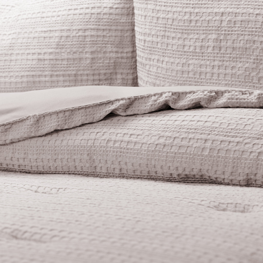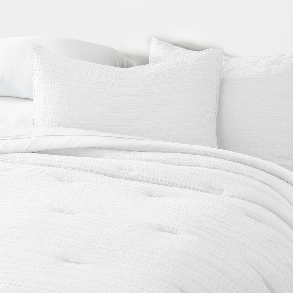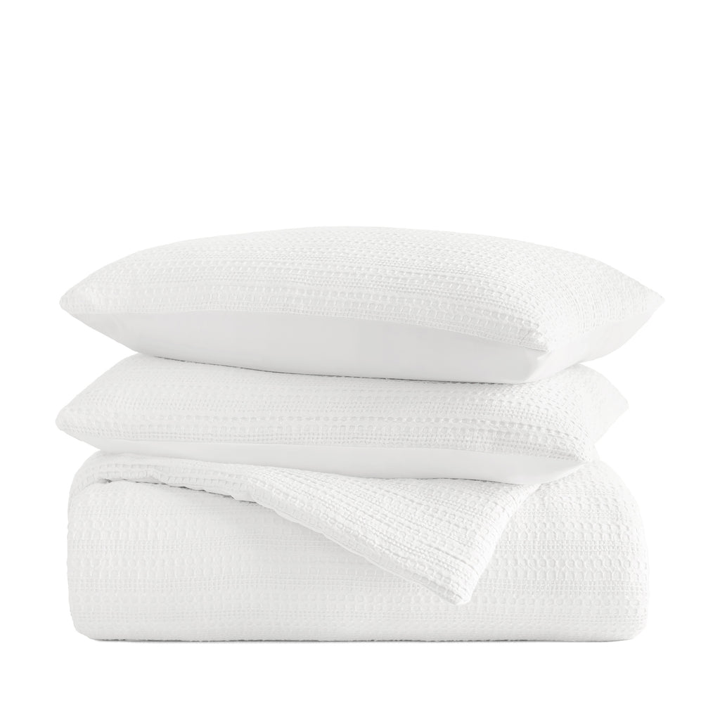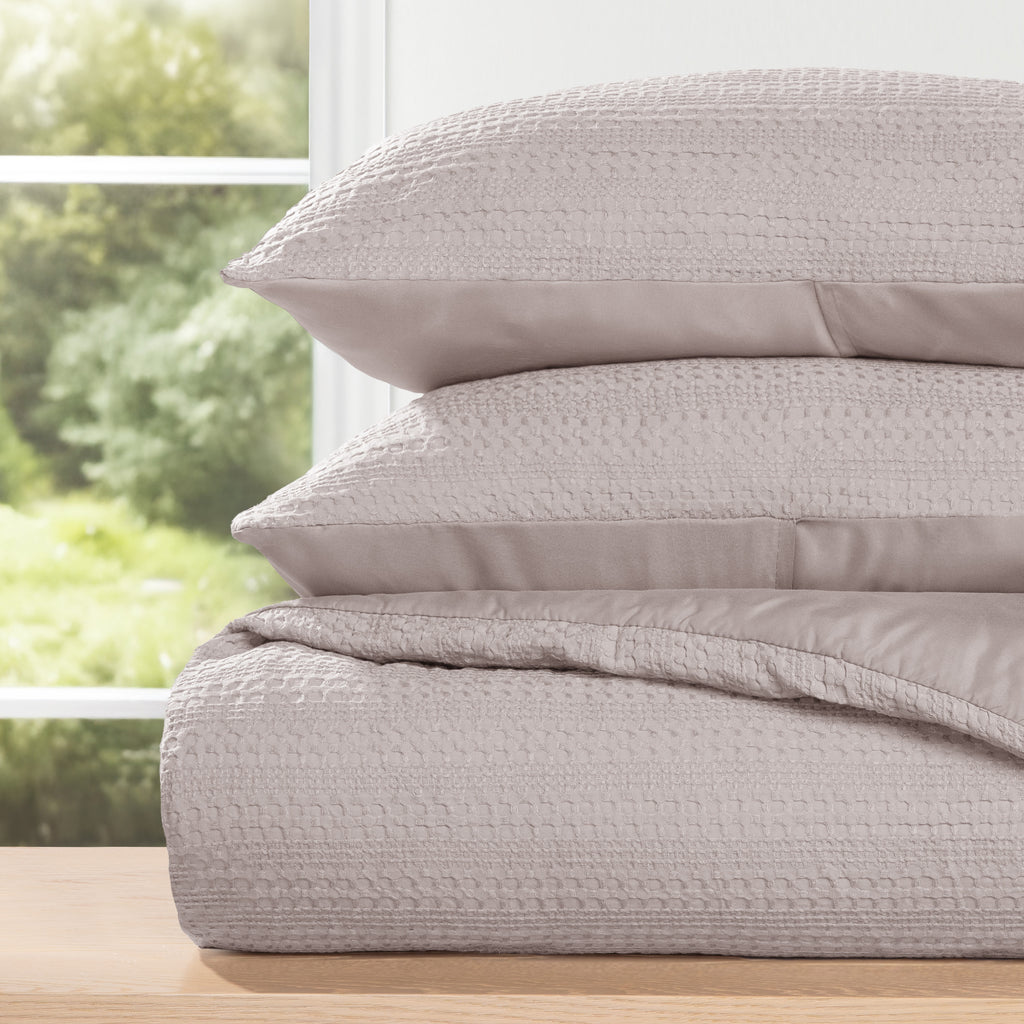 This set features an ultra-soft, double-brushed microfiber fabric with a pre-washed finish, offering a lived-in feel and exceptional softness your customers will appreciate. The elegant waffle texture adds subtle dimension, while the polyester fill ensures lightweight warmth year-round.