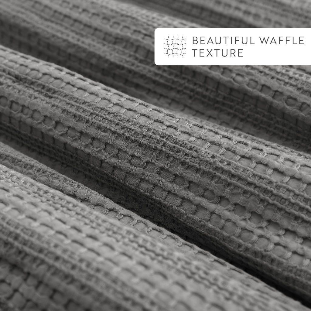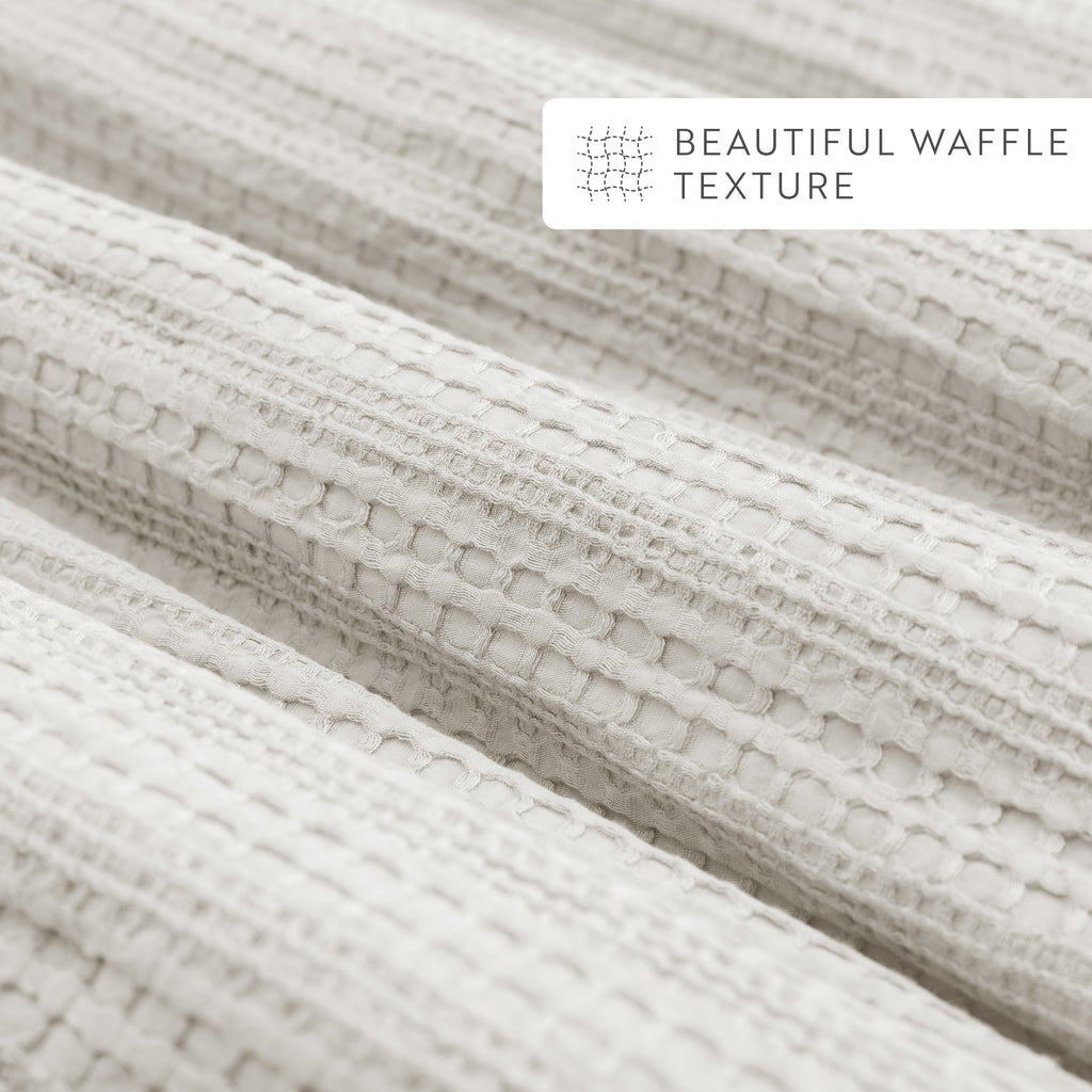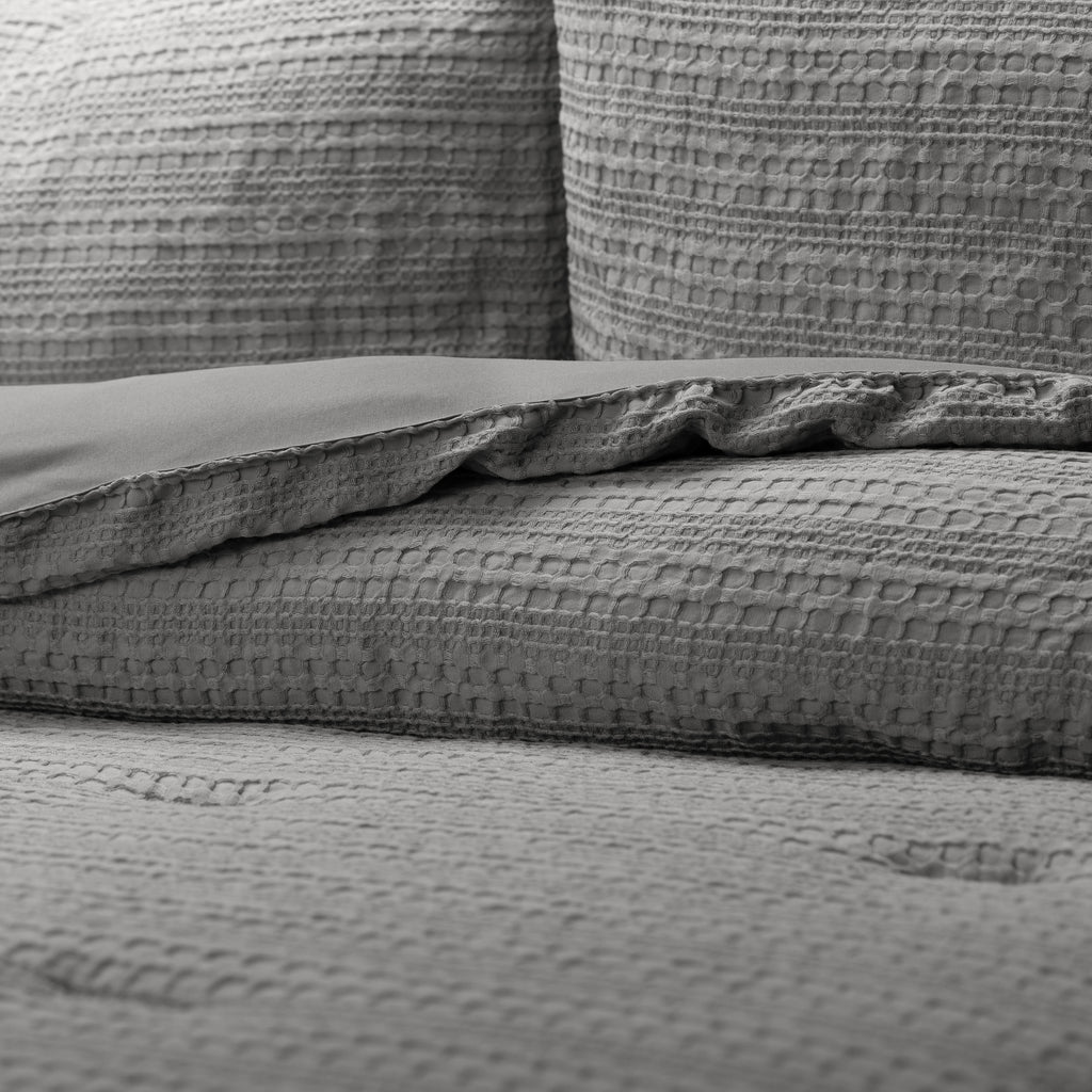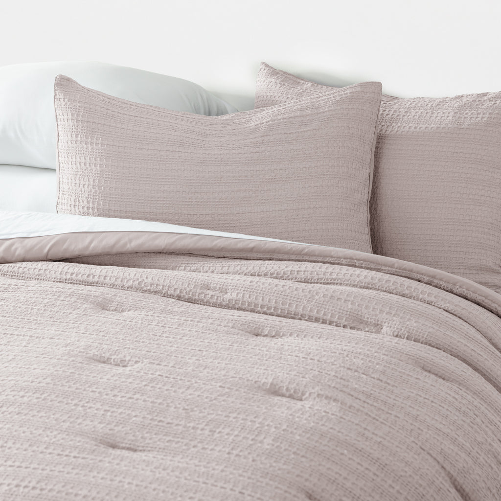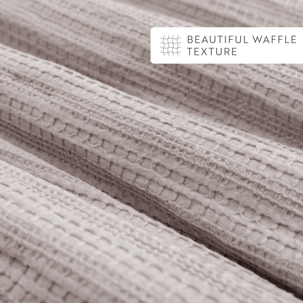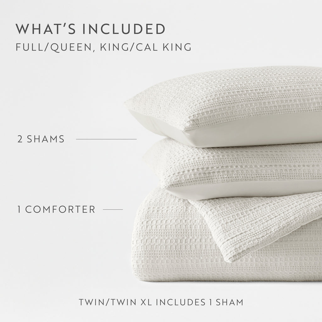 This set features an ultra-soft, double-brushed microfiber fabric with a pre-washed finish, offering a lived-in feel and exceptional softness your customers will appreciate. The elegant waffle texture adds subtle dimension, while the polyester fill ensures lightweight warmth year-round.